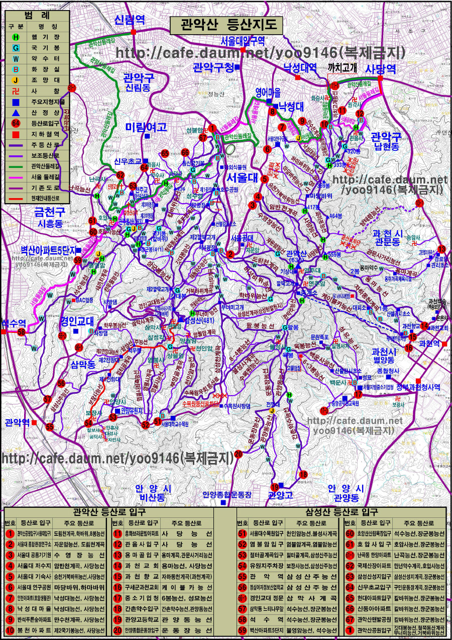 삼성산 등산로입구 및 등산코스(안양역, 안양예술공원 주차장에서 삼성산)