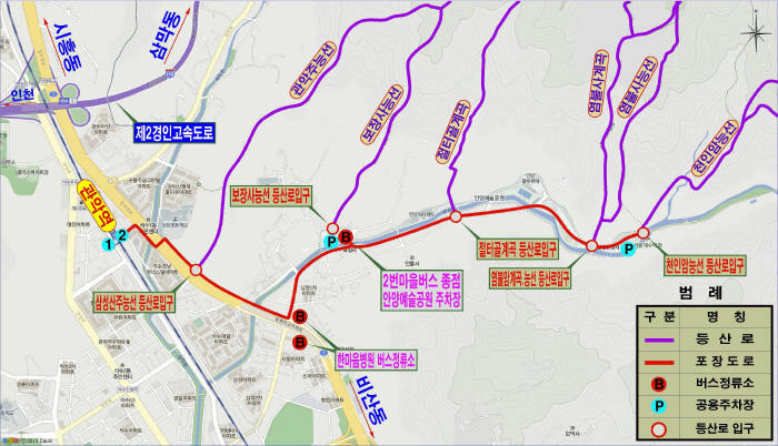 - 안양예술공원 주차장(2번마을버스종점)~염불사계곡 등산로입구~염불사계곡(염불사)