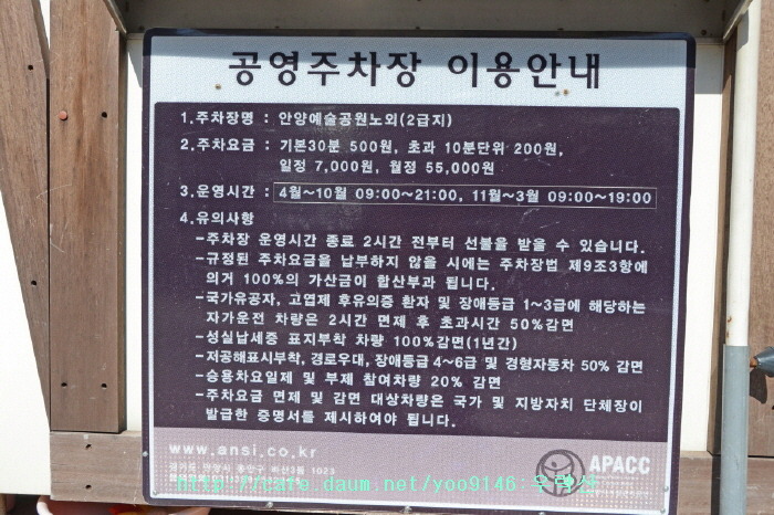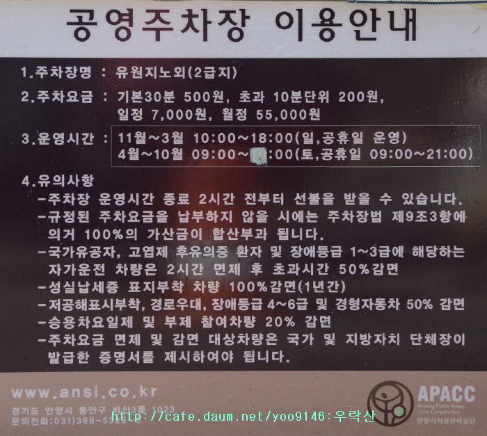 4. 안양예술공원(안양유원지) 주차장 및 주차요금 안내