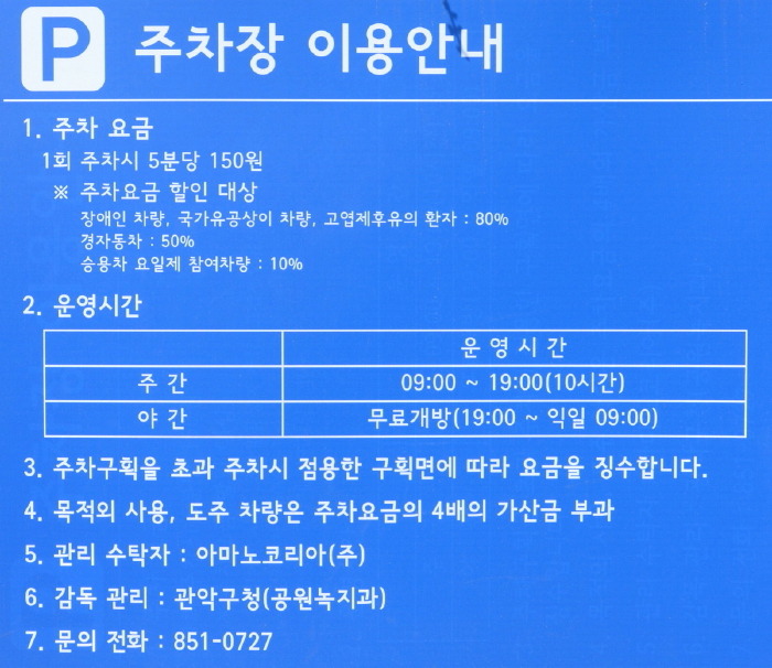 1. 관악산공원입구(서울대입구) 주차장 및 주차요금 안내