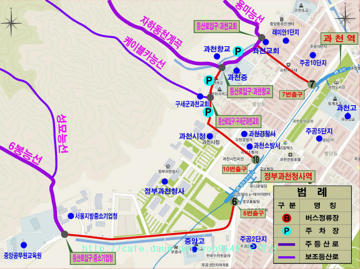 - 과천향교~케이블카승차장~용마능선산불감시초소~용마능선~용마봉~사당능선 6거리안부