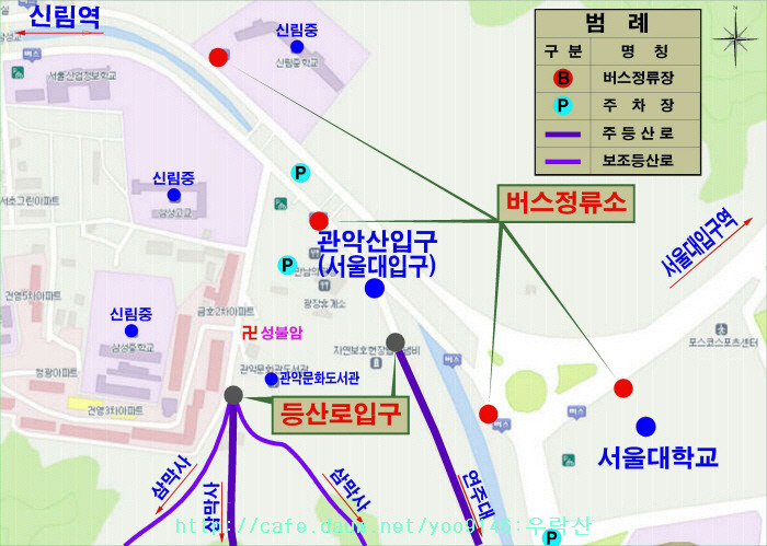 1) 관악산공원입구(서울대입구) 주차장 위치도(만남의광장앞 노상주차)