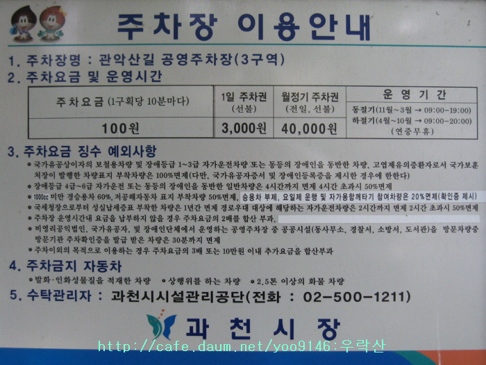 관악산.삼성산 주변 주요 주차장 및 주차요금 안내