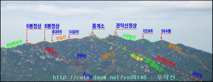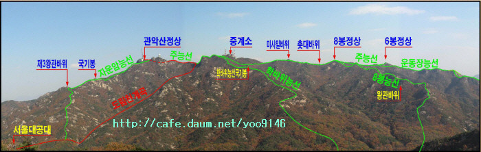 관양고입구-간촌약수능선입구-간촌약수능선-관양동능선-관악산 주능선 6봉정상-8봉정상-중계소