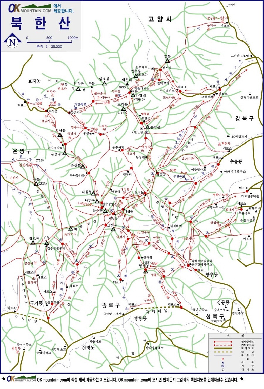 5) 북한산 등산지도, 등산코스 안내(지형도)