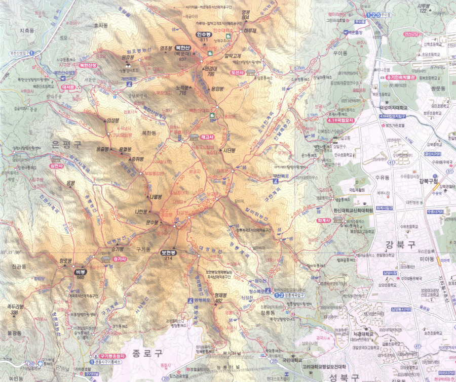 4) 북한산 등산지도, 등산코스 안내(지형도)