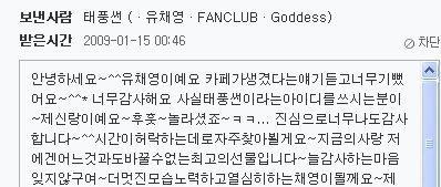 다음날 15일엔 채영님께서 쪽지를 보내주시고 가입 후 글을 쓰셨습니다.