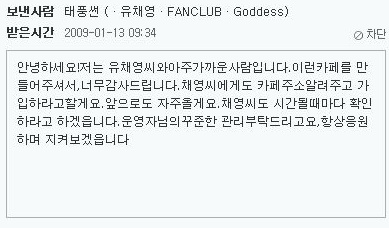 단지 팬 한 명이 홀로 게시판에 글을 남기는 것을 제외하고는 카페의 활동이 없었다.