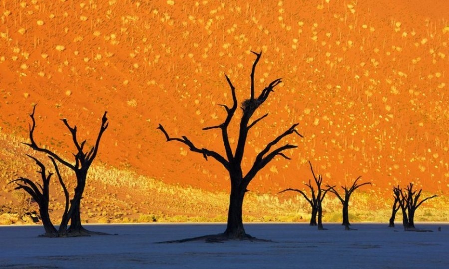 나미비아, 데드블레이(Deadvlei) 이 사진은 초현실주의 회화가 아닙니다. 세상에서 가장 거대한 모래언덕 아래 '죽음의 계곡'에서 죽은 나무들을 찍은 사진입니다. 이곳에 한 때 번성했던 숲은 사막이 넓어지면서 사라져버렸습니다. 러시아, 바이칼 호수의 청록색 얼음들