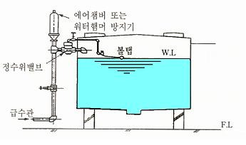 그림 2.62 물탱크의 워터해머 방지기 설치 예