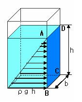 물속에 작용하는 수압은 깊이에 비례해서 커지며, 그 면에 직각으로 작용한다. 그림 1.8과 같이 폭 b인 탱크에 깊이 h만큼 물이 차 있는 경우 벽면 ABCD에 작용하는 수압은, 수면 AD에서는 0이고, 수면으로부터 깊이에 비례하며 커지며 BC점에서 ρgh가 된다. 따라서 벽면 전체에 작용하는 수압(전압력)은 평균수압 ½ ρgh에 벽 면적을 곱한 값이다. 즉 전압력 F[Pa]는
