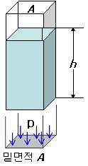 이므로 액체가 밑면적에 누르는 평균압력은 다음과 같다.