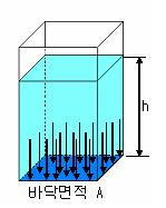바닥면에 작용하는 압력은 P = γh[kgf/m2]이므로