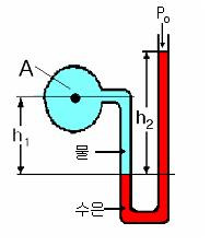 (2) 마노미터(manometer) : 액주계(液柱計)라고도 하며, 유리관처럼 투명한 관으로 직관ㆍU자관ㆍ경사관 등의 모양으로 만들어, 압력의 변화를 관 속에 나타나는 액주의 변위에 의해 측정한다. 주로 저압 측정에 사용한다.