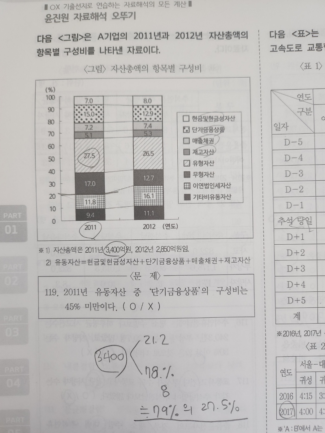 이 다음에 문제에서 유동자산 중 단기의 구성비 45%미만인지 어떻게 풀이하면 좋을까요?