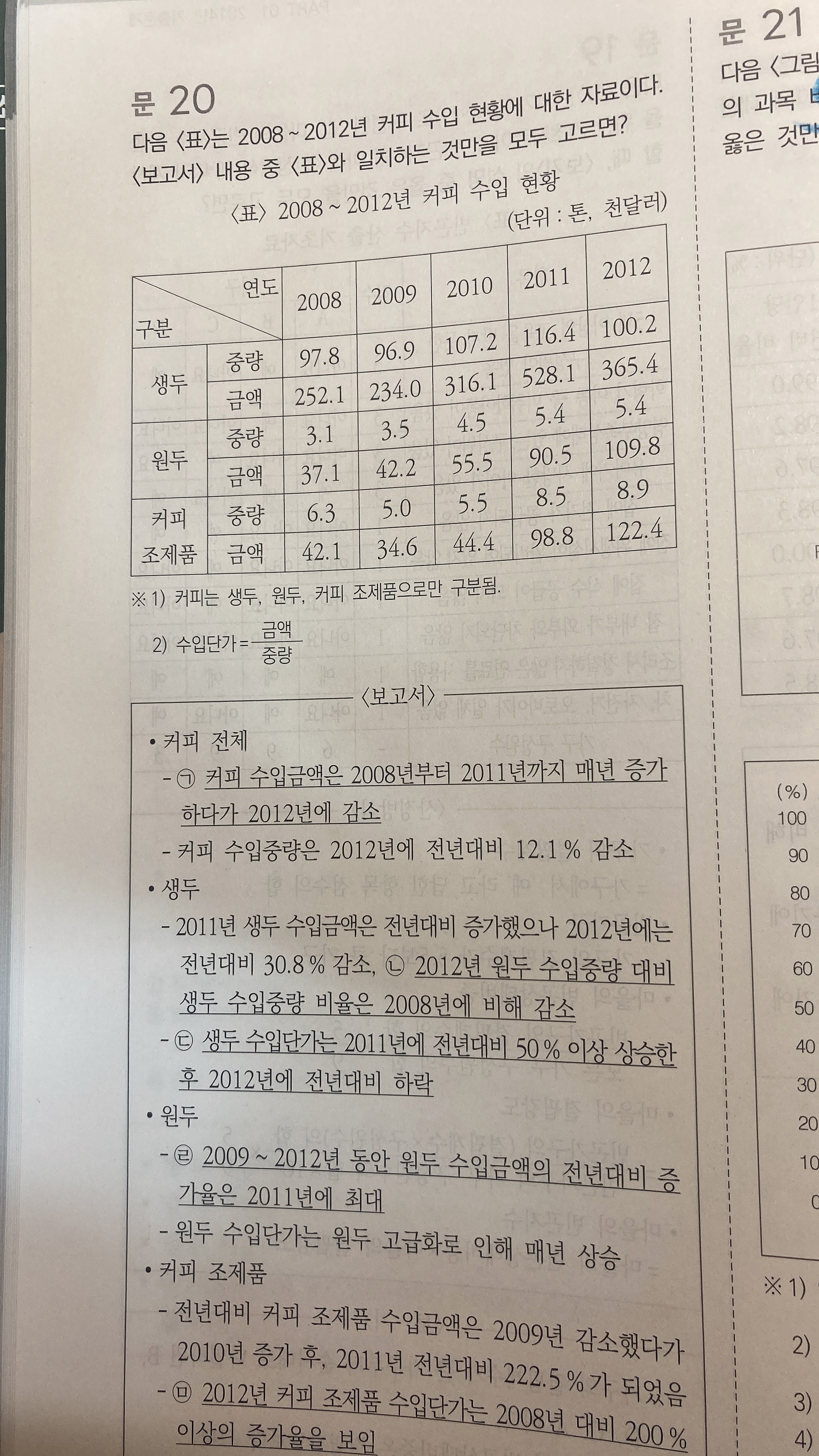 저는 ㄷ선지에 대해서 “생두 수입단가가2011년에 전년대비 50%이상 상승“을