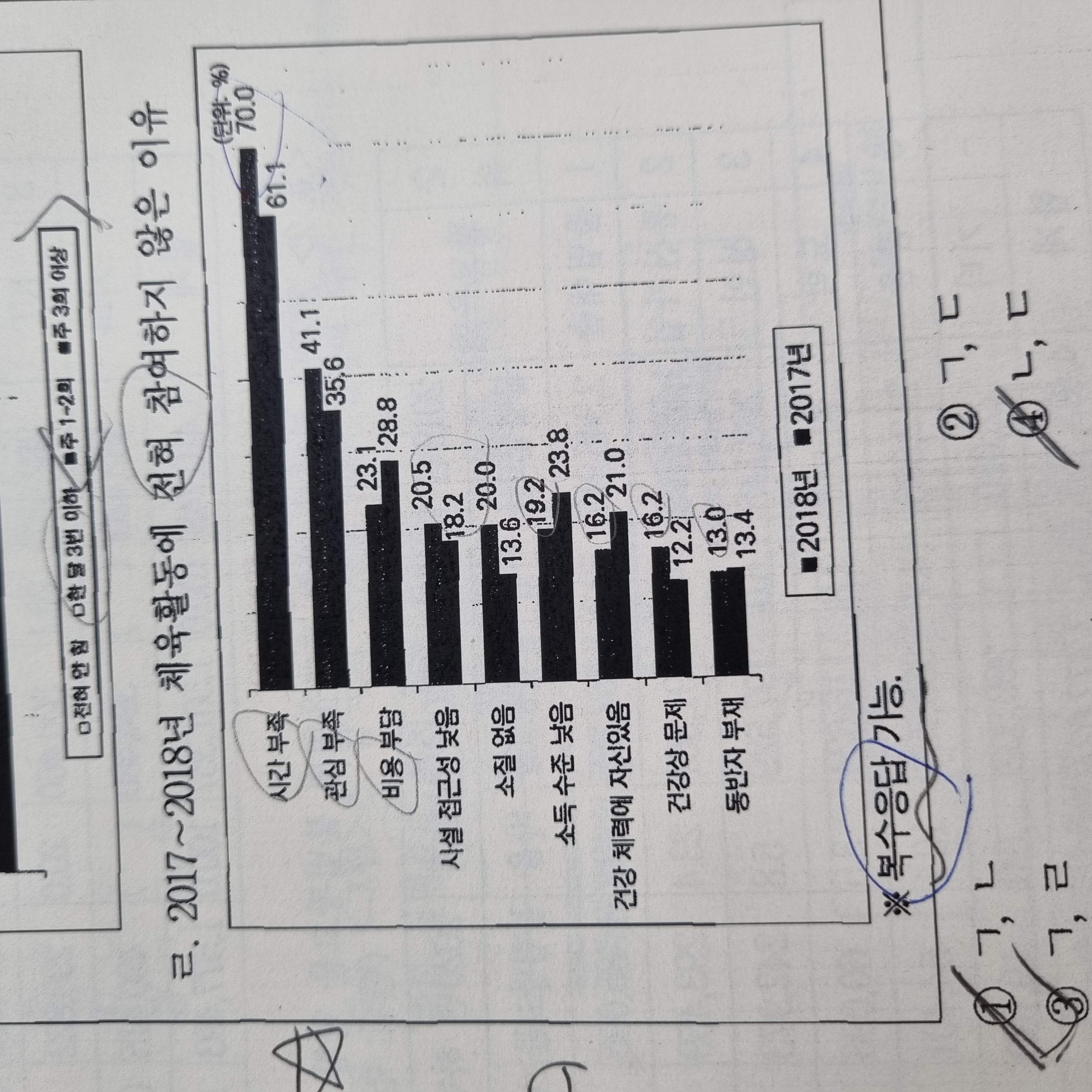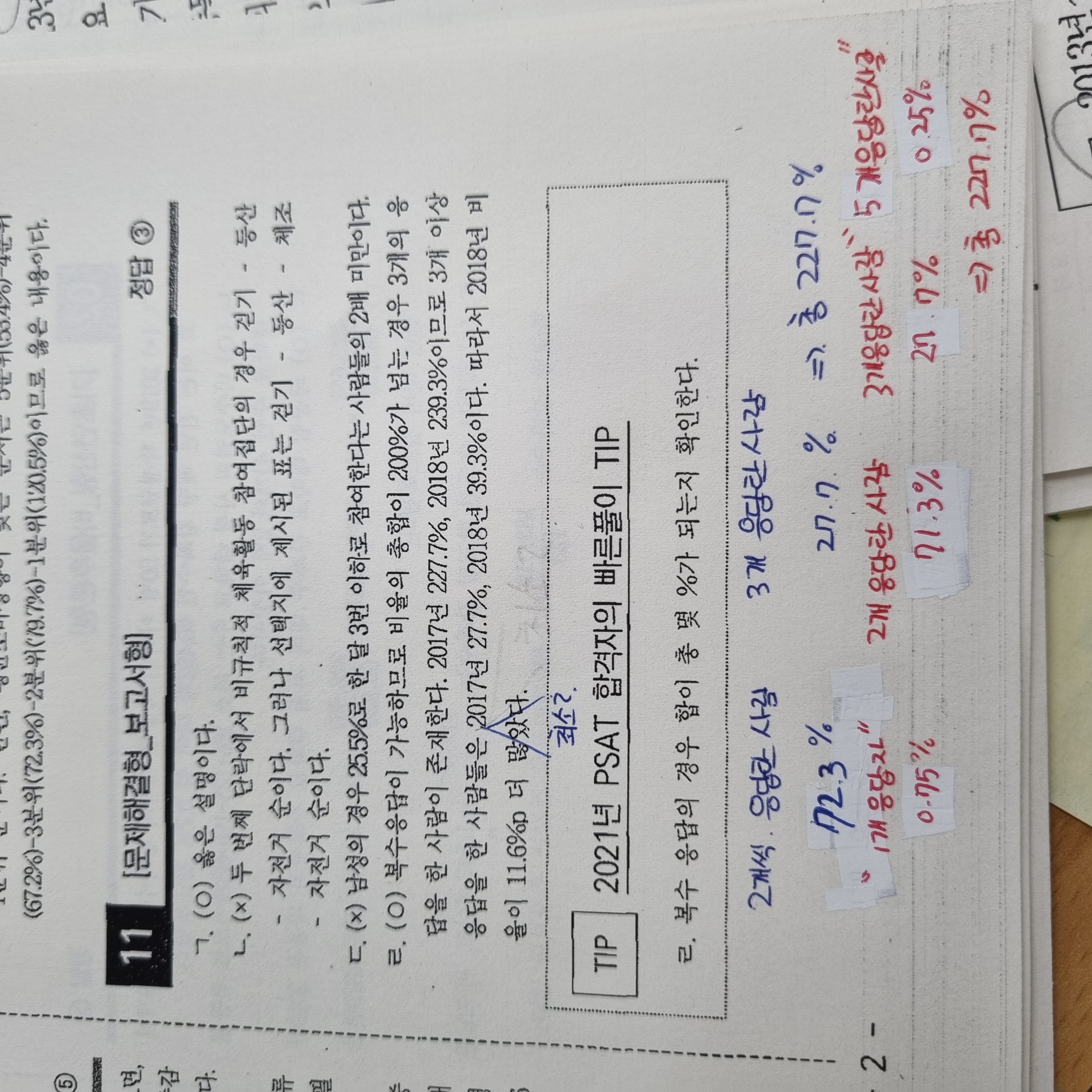 이 경우 3개 이상 응답자가 27.95퍼센트인거여서 해설지처럼 27.7퍼라고 단정못하고 최소 27.7인거 아닌가 생각했습니다.
