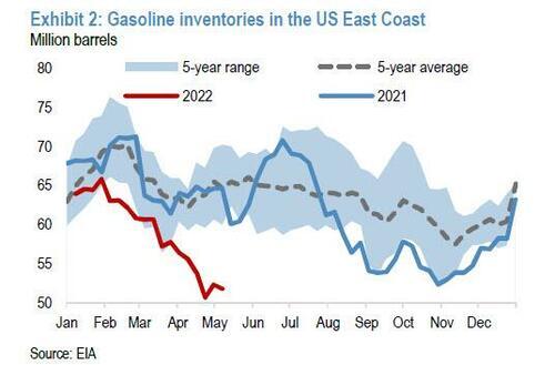가장 낮은 계절적 수준에 머물고 있습니다 (디젤 생산 덕분에). 동부 해안의 휘발유 수지는 더욱 타이트해져 2011년 이후 최저