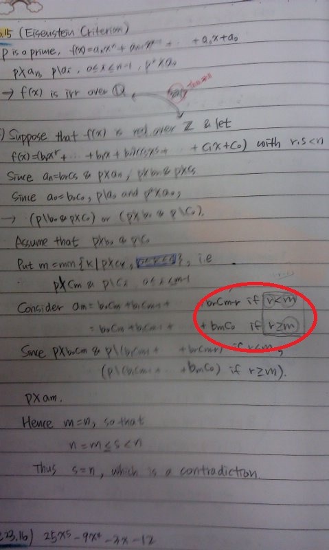 아이젠슈타인 판정법 증명 과정 중 이해가 안되는 부분이 있어서..