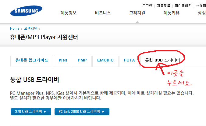 삼성은 삼성전자다운로드센터에 가셔서 통합USB드라이버를 받으시면 됩니다.