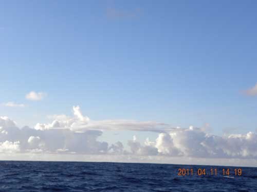 타이티를 출발하여 사모아로 가는 방향에 있는 섬의 모습이다.