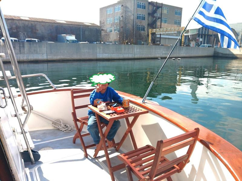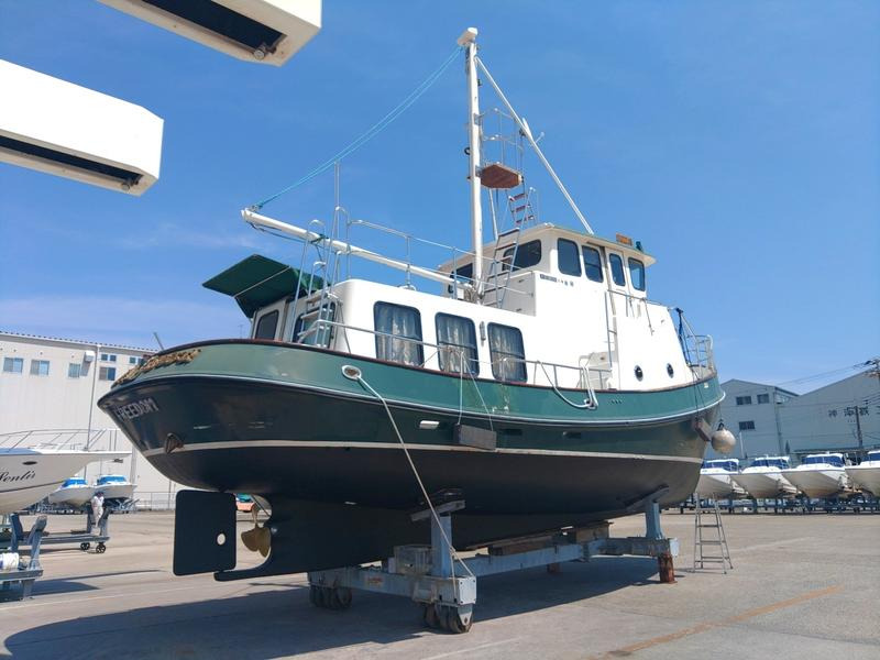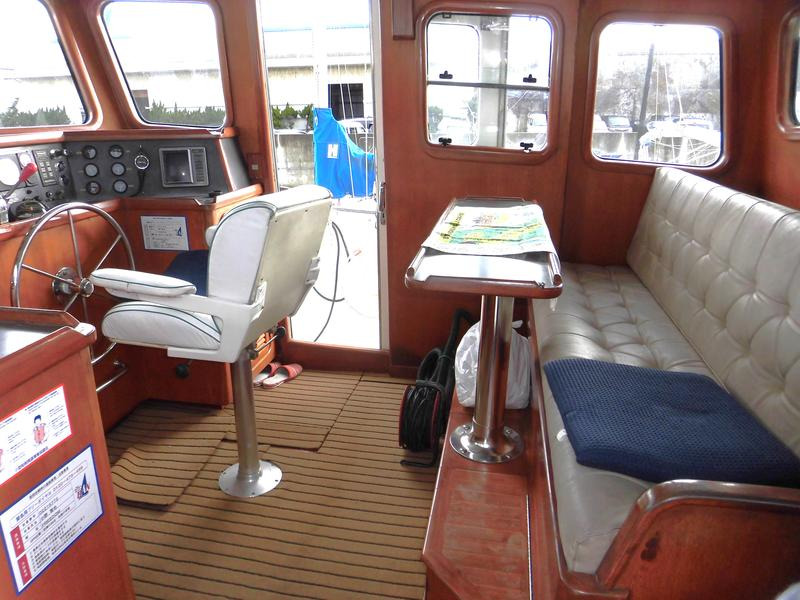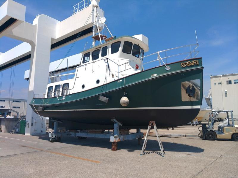 이 배는 일반적인 레저 보트와 달리 강력한 기관부와 실용적인 설비를 갖춘 작업선 겸용 트롤러 스타일입니다.