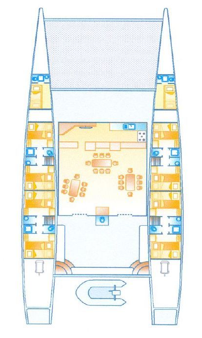 The boat accomodate 24 Berths in Total. The Crew 2 Cabins are in the Bow.