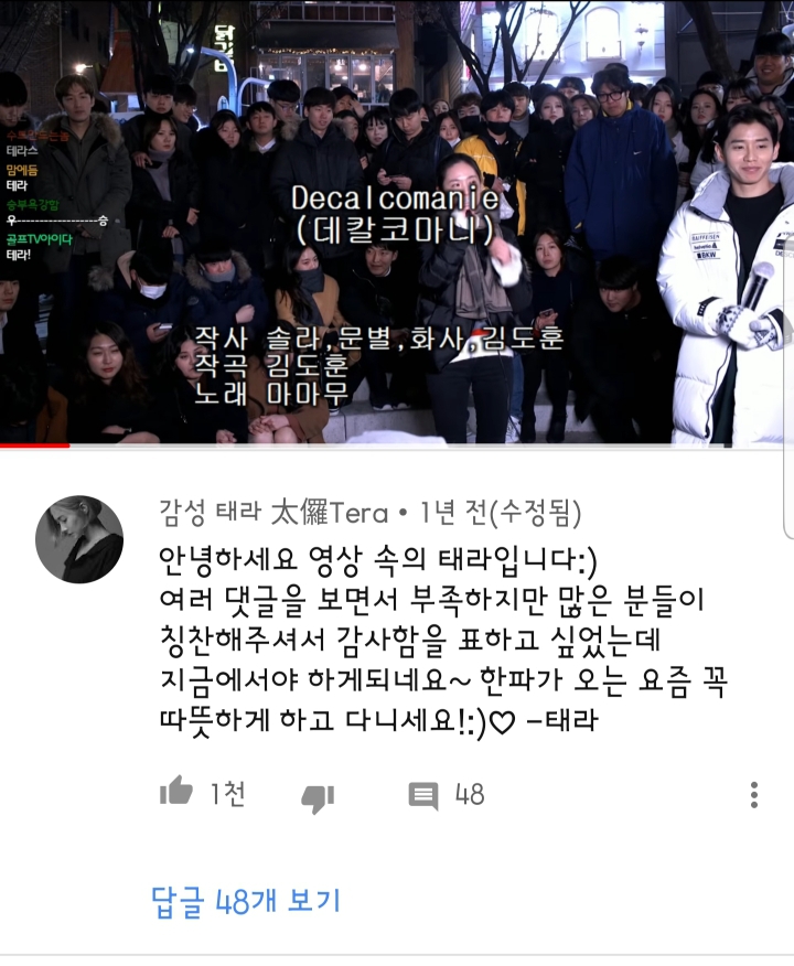 태라 - 데칼코마니 (창현노래방) 전설의 시작 작성자매실|작성시간19.01.28|조회수774 목록 댓글 3 글자크기 작게가 글자크기 크게가 태사기 전설의 시작입니다. 동영상[CH]KPOP COVER STREET KARAOKE 광고&섭외&스폰 문의: Bjummma@naver.com 창현 유튜브 구독하기 (Like and Subscribe Plz) https://bit.ly/2kwqjPd 창현이 입은 옷이 궁금하다면 창현샵 http://lchshop.com #창현 #BJ창현 #먹방 #먹스타그램 #맛스타그램...www.youtube.com 다음검색 현재 게시글 추가 기능 열기 북마크 공유하기 신고 센터로 신고 댓글 댓글 3 댓글쓰기 답글쓰기 댓글 리스트 작성자매실 작성자 본인 여부 작성자 | 작성시간 19.01.28 진짜가 나타났다.. 작성자김환 | 작성시간 19.01.28 아 저이거 보고 소름 돋았습니다.. 작성자태사기본인 | 작성시간 19.01.28 ㅎㅎ와~벌써1년이넘었네요ㅎ 댓글 전체보기