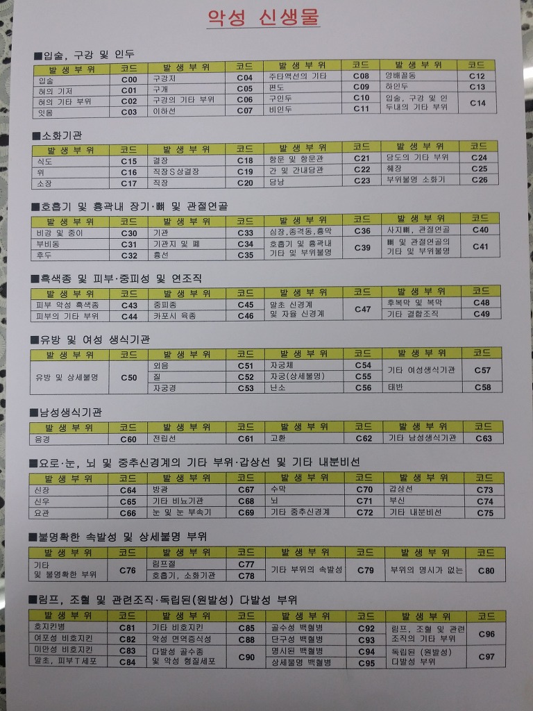한국 표준질병 사인분류/질병코드 분류표/악성 신생물 작성자홍인기|작성시간15.01.12|조회수8,909 목록 댓글 0 글자크기 작게가 글자크기 크게가 다음검색 현재 게시글 추가 기능 열기 북마크 공유하기 신고 센터로 신고 댓글 댓글 0 댓글쓰기 답글쓰기 댓글 리스트