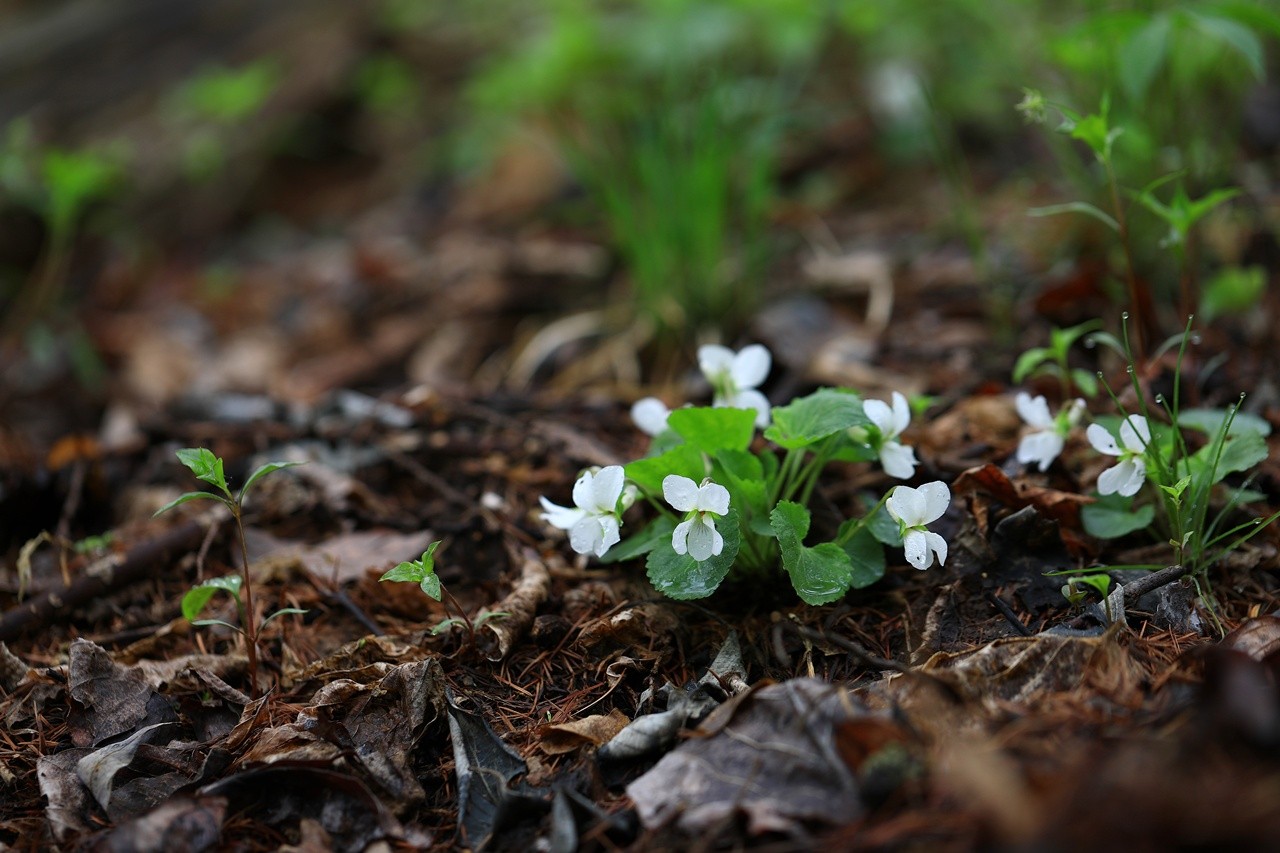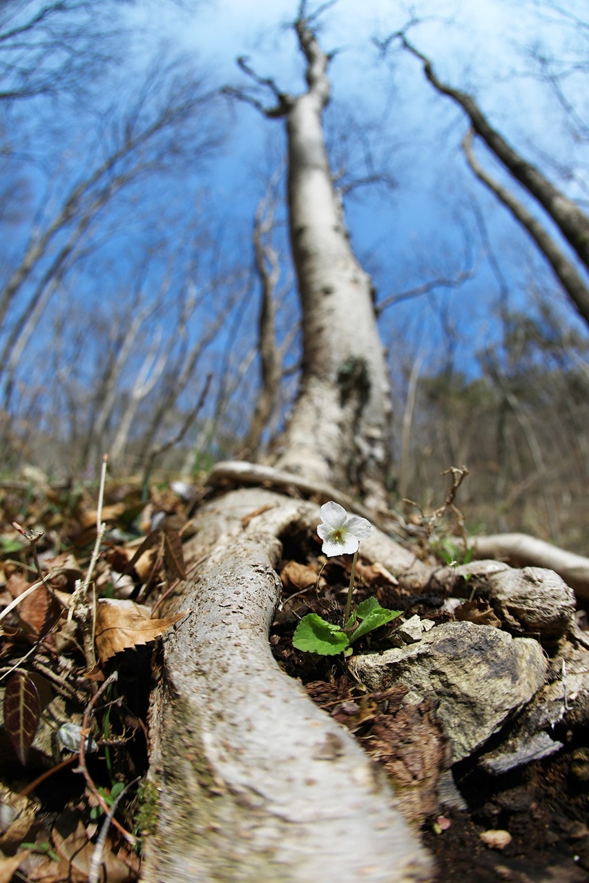 나무 밑둥에 터한 잔털제비꽃 광각으로 멋지게 담으셨습니다.