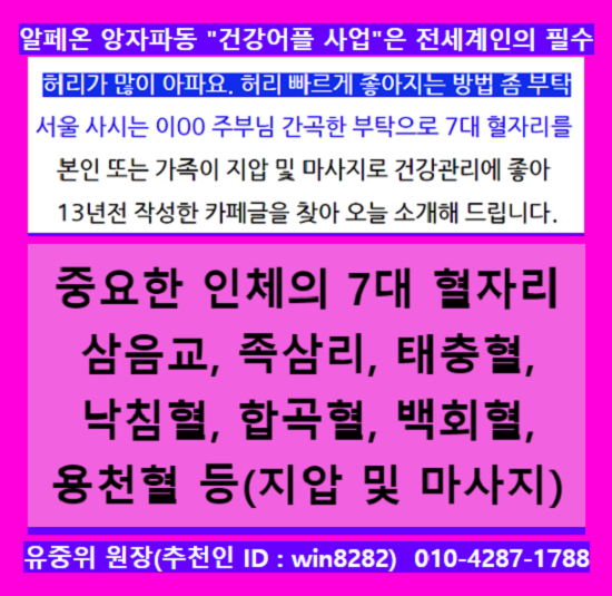 [건강관리]허리가 많이 아파요. 허리 빠르게 좋아지는 방법 좀 부탁으로 중요한 인체의 7대 혈자리 / 알페온(양자파동) 자가케어(기혈순