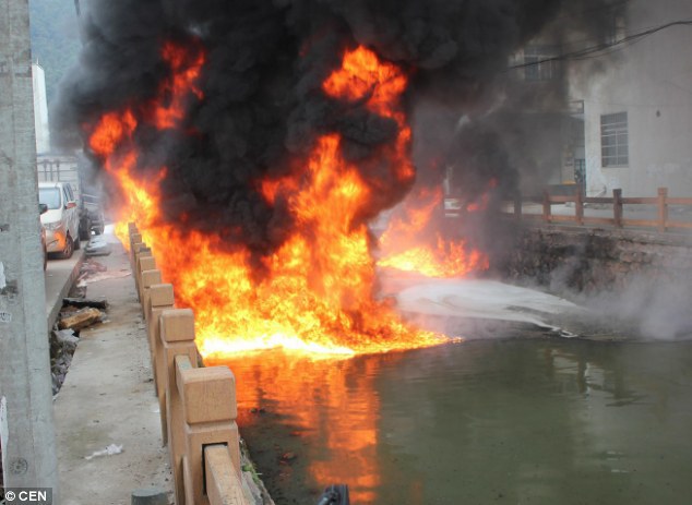 중국의 윈저우 강은 불 붙는 강으로 유명하다. 위 짤은 강에 담배꽁초를 던진 결과다.