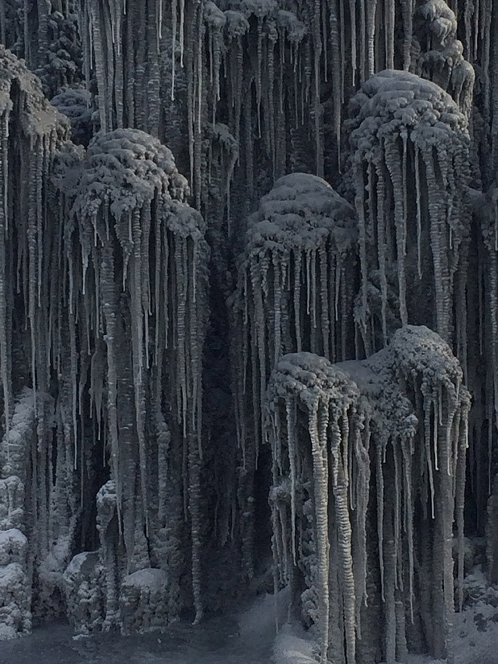남성의 음경처럼 생긴 거대한 눈덩이들은 사실 거대한 나무가 눈과 얼음에 뒤덮힌 것이다.
