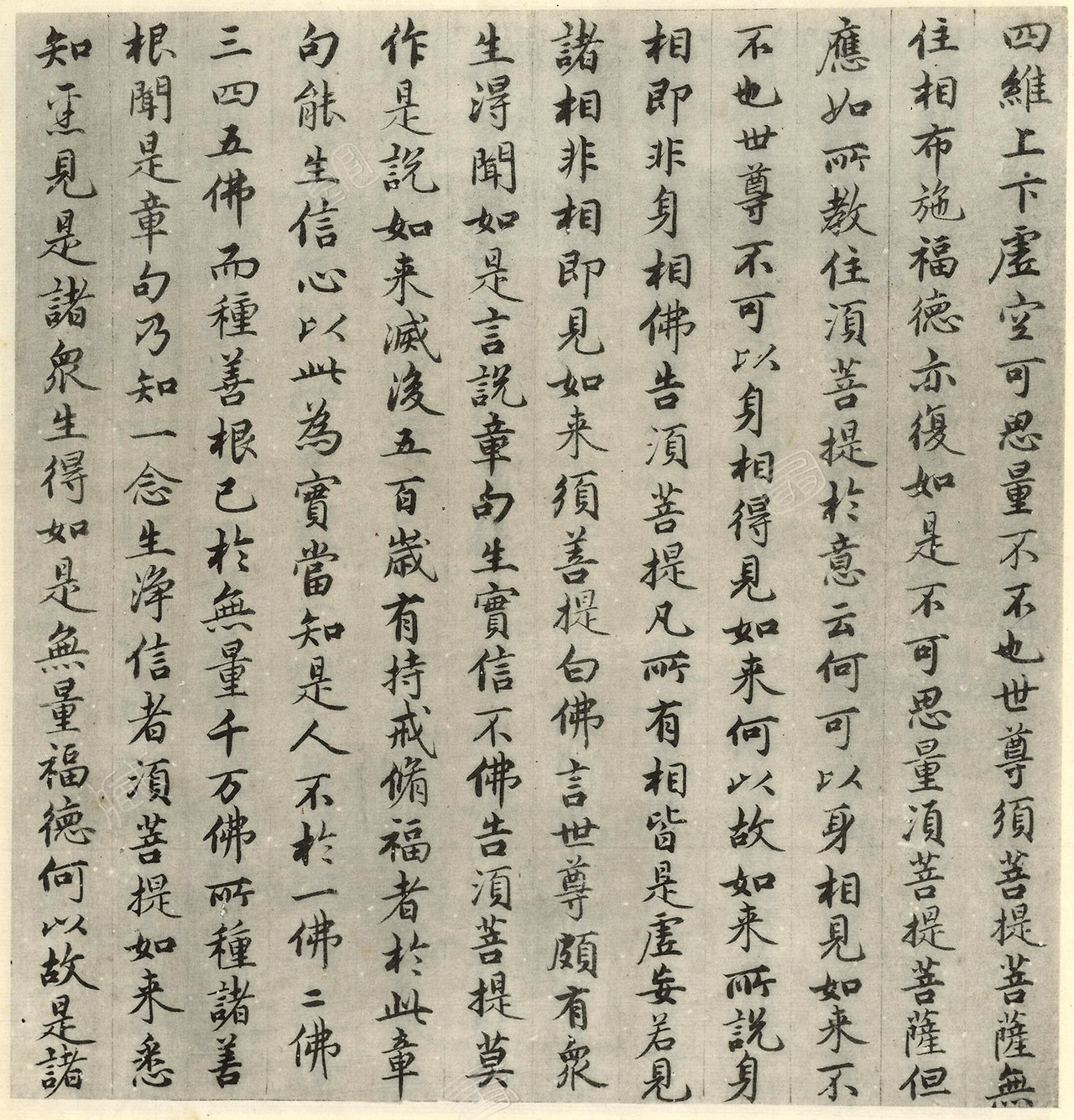 《金刚经》为佛教的重要经典,赵孟頫抄写的《金刚经》版本在民间尤为盛行。当时的佛教寺院和信徒们纷纷出资刊印,以祈求保佑和功德。