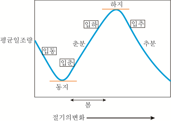 그림 2. 절기의 변화와 평균일조량