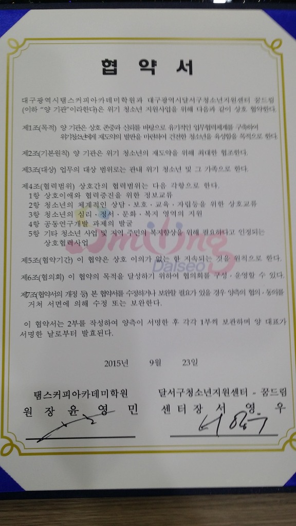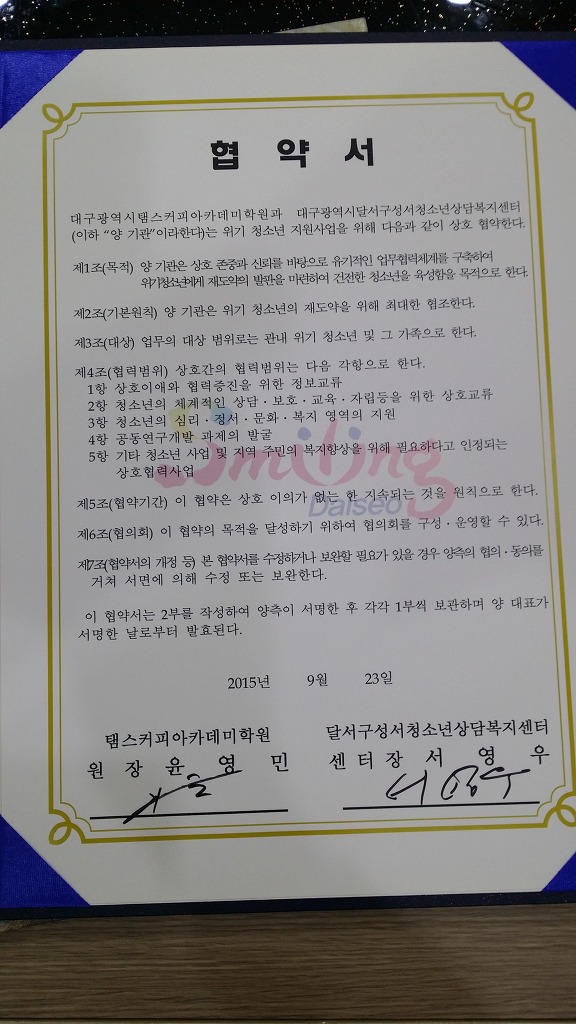 *** 달서구 . 성서청소년 상담지원센터 업무 협약 *** 작성자등대 (대구)|작성시간15.11.30|조회수140 목록 댓글 1 글자크기 작게가 글자크기 크게가 다음검색 현재 게시글 추가 기능 열기 북마크 공유하기 신고 센터로 신고 댓글 댓글 1 댓글쓰기 답글쓰기 댓글 리스트 작성자손동석[포항] | 작성시간 15.12.01 와우~ ㅉㅉㅉㅉ 댓글 전체보기