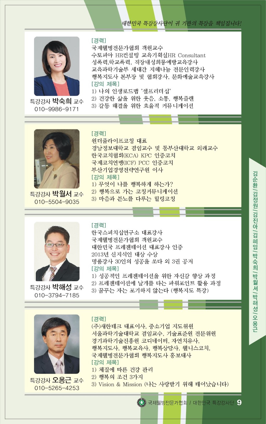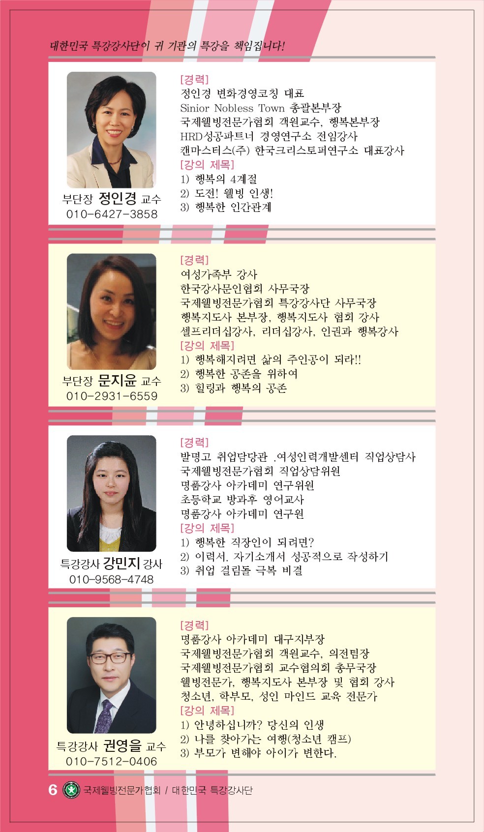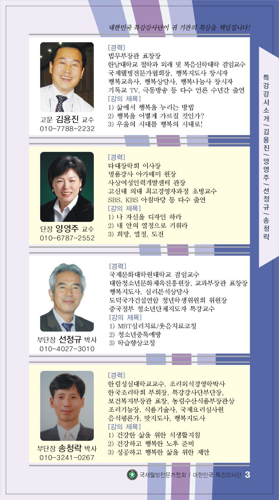 [스크랩] 대한민국 특강강사단원을 소개합니다. 작성자코람|작성시간13.01.24|조회수37 목록 댓글 0 글자크기 작게가 글자크기 크게가 다음검색 스크랩 원문 : 강사뉴스 현재 게시글 추가 기능 열기 북마크 공유하기 신고 센터로 신고 댓글 댓글 0 댓글쓰기 답글쓰기 댓글 리스트