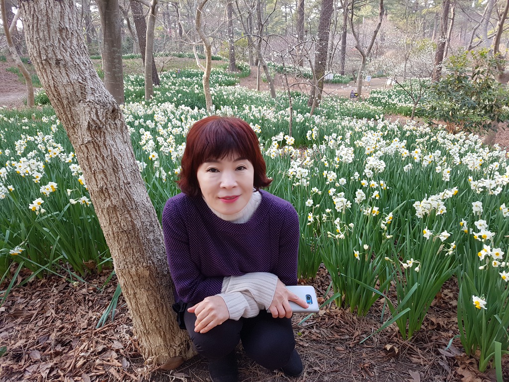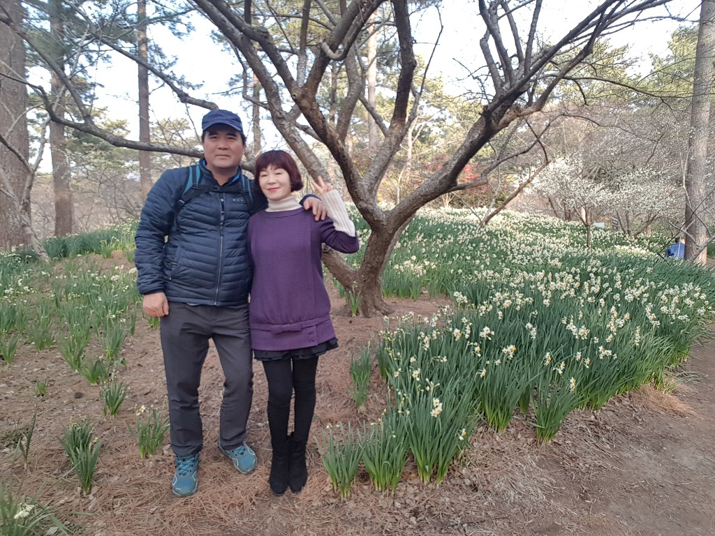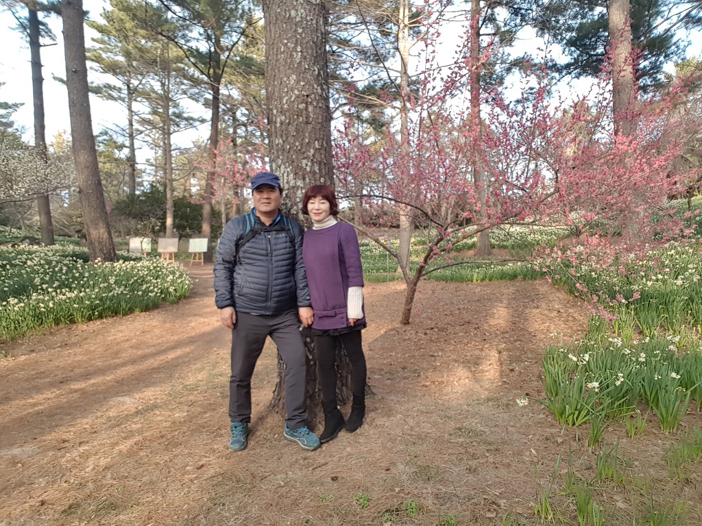 땅에는 수선화가 피어 있고 나무에는 매화가 만발해 장관을 이룸