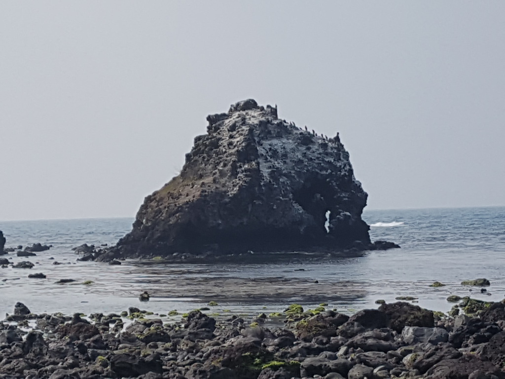 [비양도 코끼리 바위 바위가 온통 하얗게 덮혀있다. 새들이 많이 사는 곳이라 그들의 배설물]