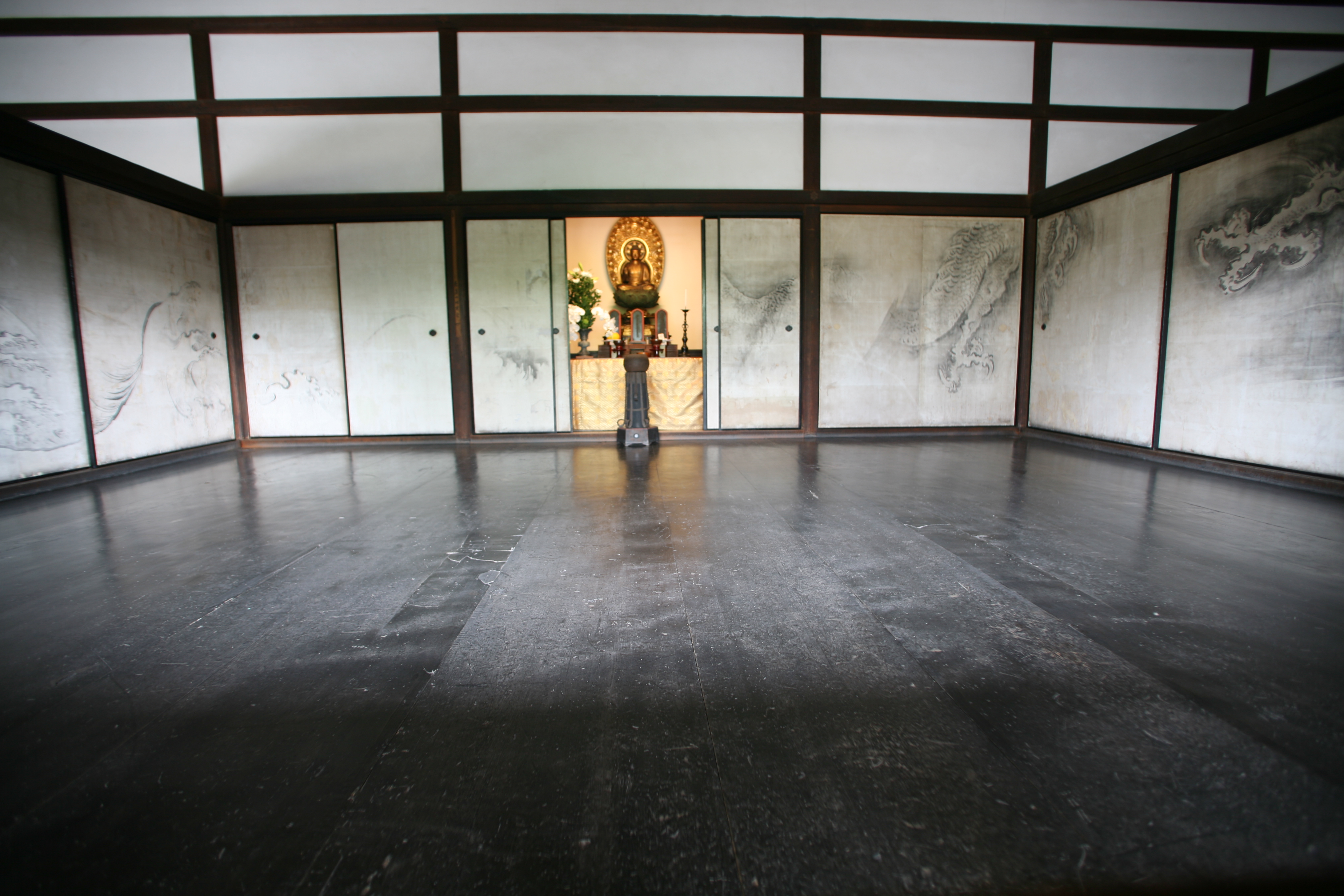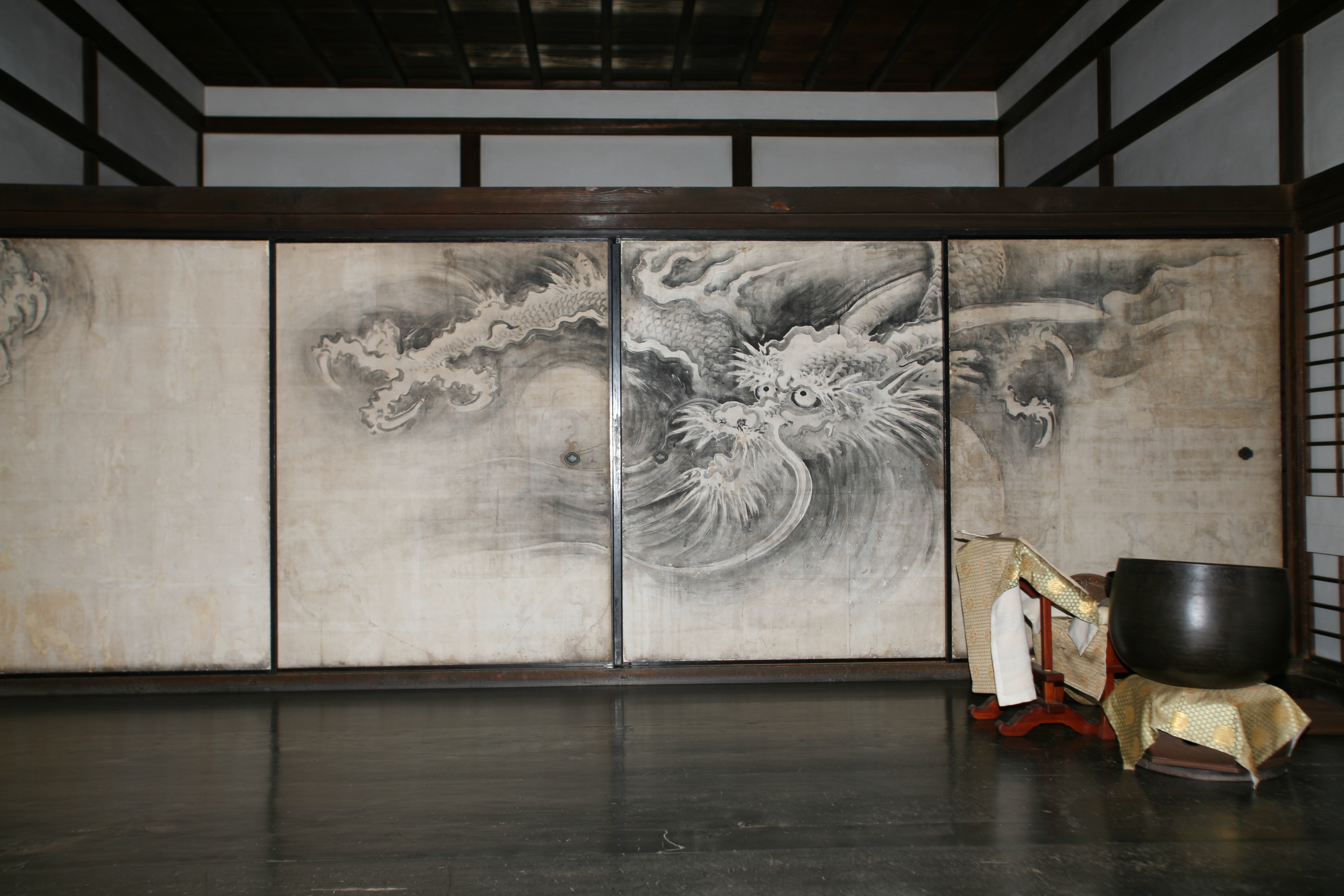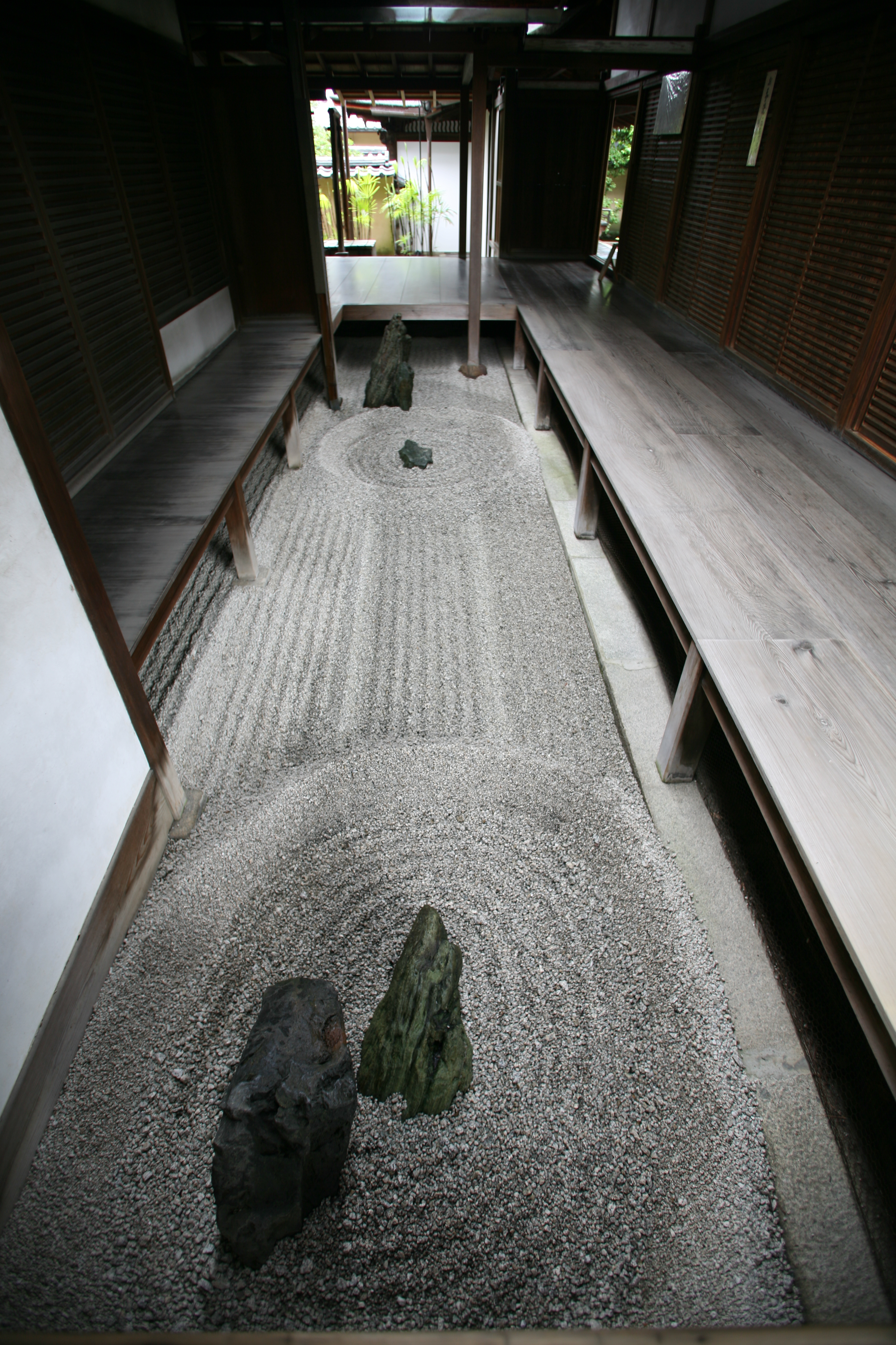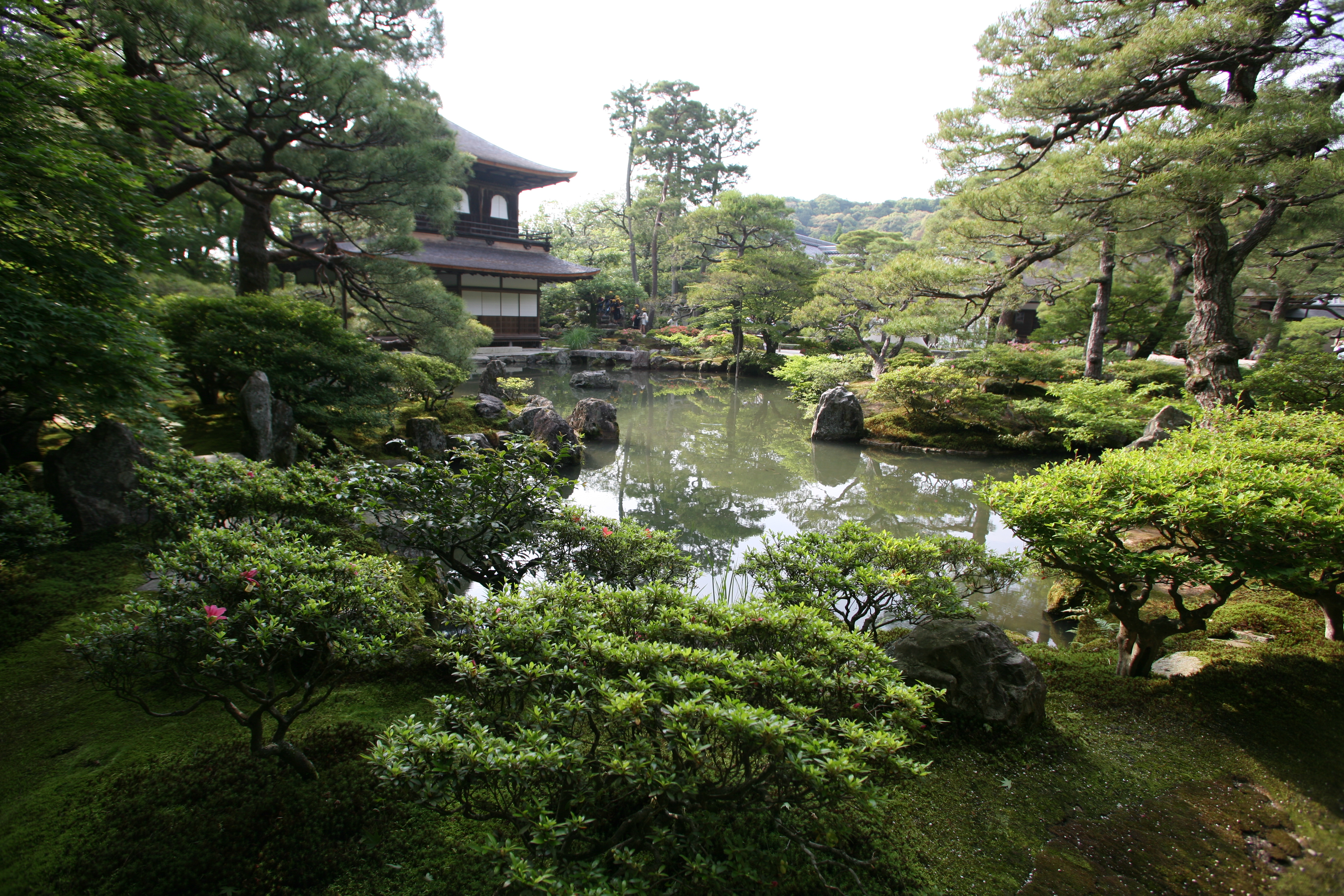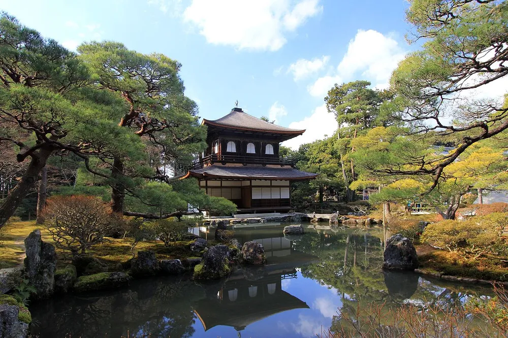 요시마사[足利義政]는 오닌[應仁]의 난을 전후하여 막부의 권위가 실추되고 세상이 불안정해지자, 교토의 동쪽에 할아버지인 요시미쓰가 세운 금각사를 본떠 히가시야마 산장을 세우고 그곳에서 시간을 보낸다. 이곳이 지금의 은각사로, 당시 유행하던 선禪 정신에 입각해 소박함과 고요함이 강조되었던 것이다. 일본 정신의 한 축으로 회자膾炙되는 선禪이 이때는 이미 무르익었다고 할 수 있다.