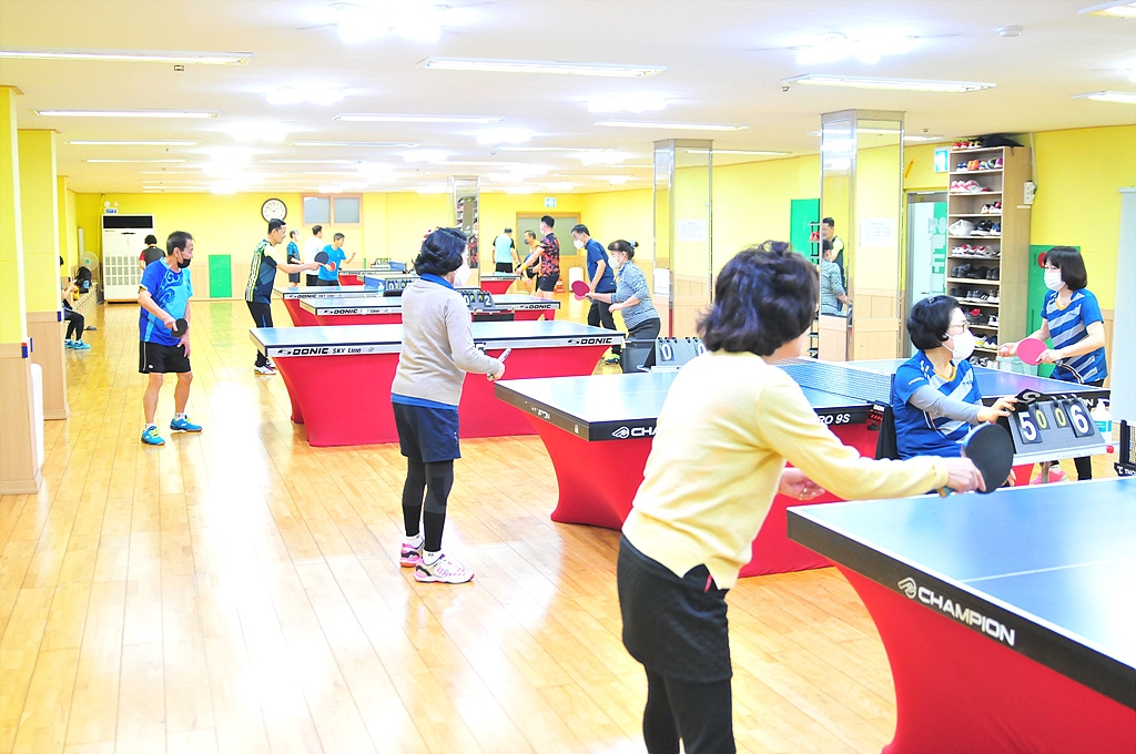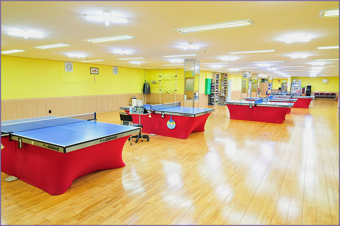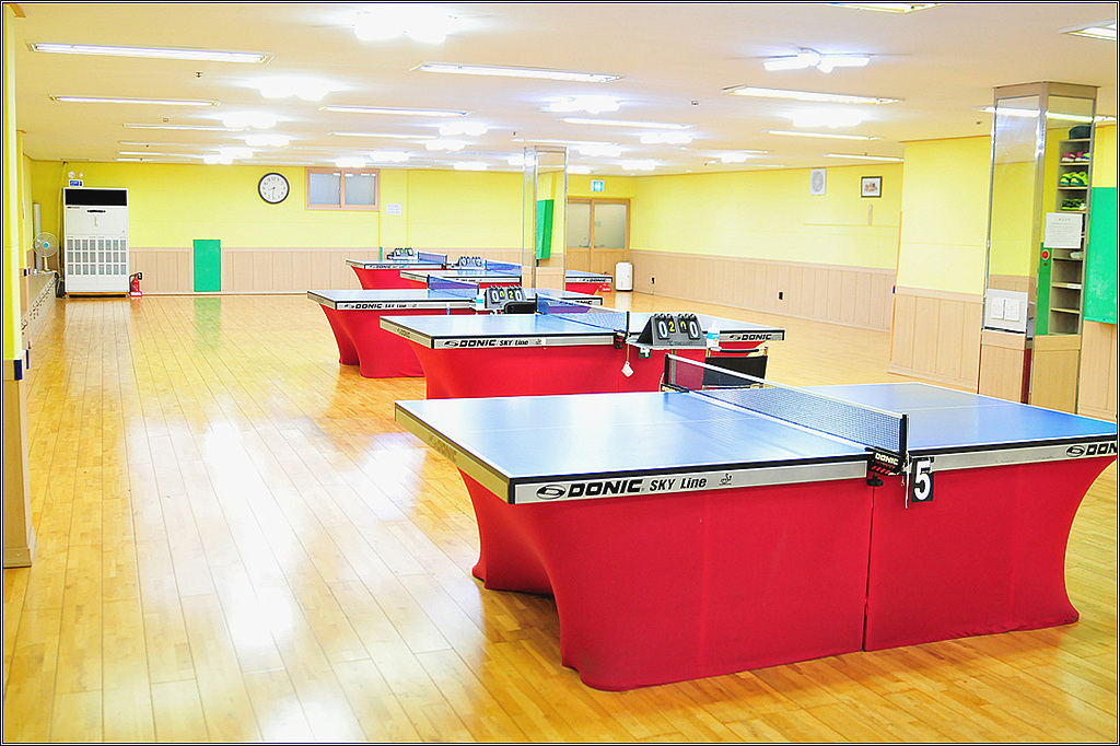 1~7번 탁구대 전경(5번 탁구대는 가볍게 몸을 풀 수 있는 알찬 공간입니다.)
