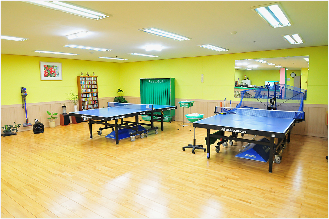 ♣ 150평의 넓은 공간에 탁구대 9대 설치(레슨 1대, 탁구 로봇 1대 포함)