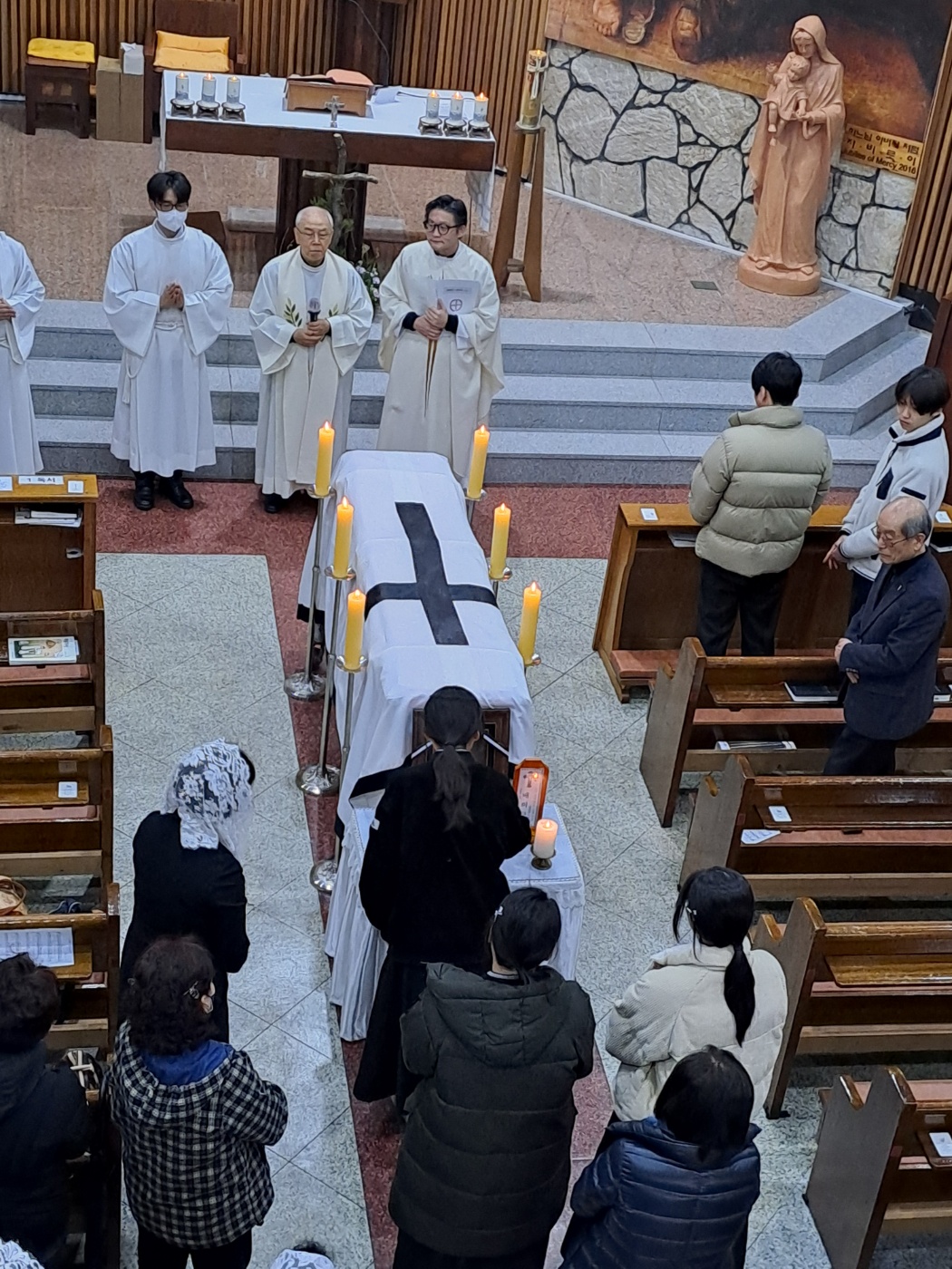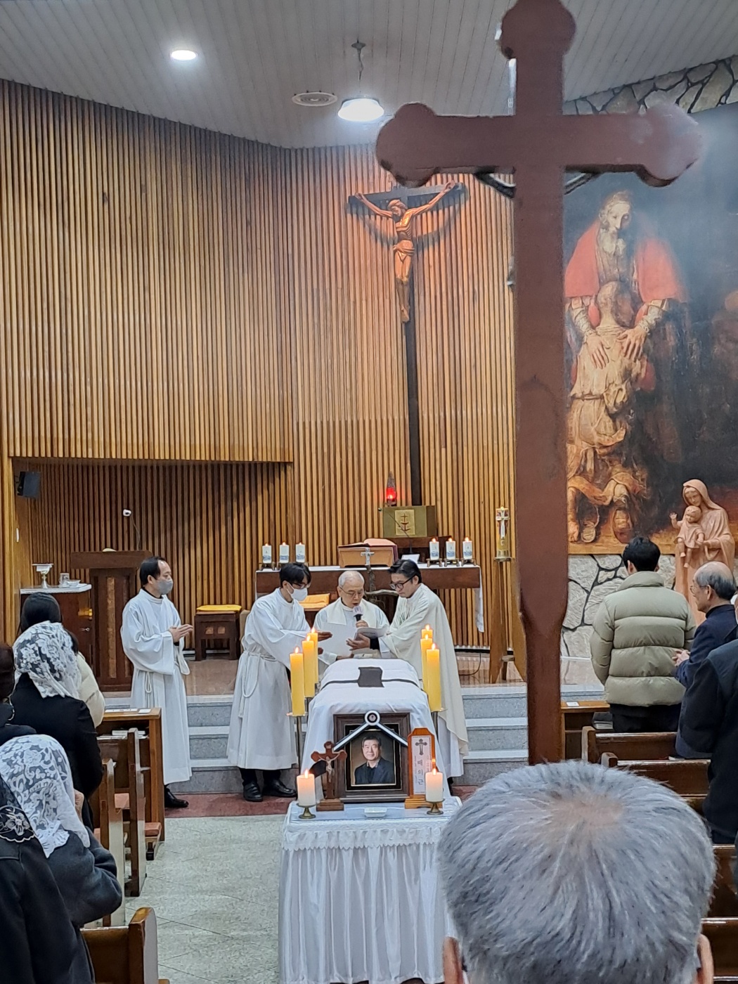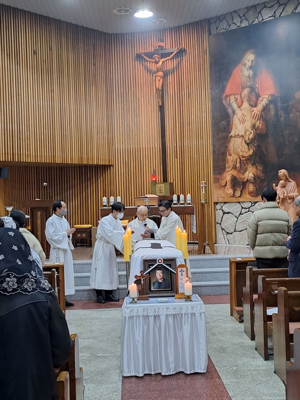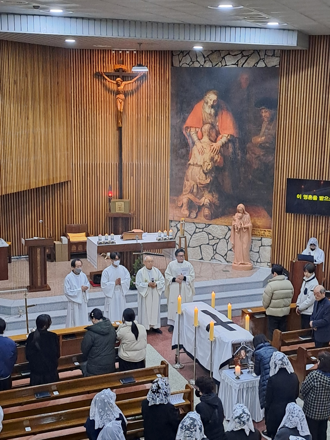 2월 22일 목요일 오전 9시 30분에 봉헌되었던 배의근(대건안드레아) 형제님의 장례 미사 모습. 그리스도인으로서 품위를 지키며 정의롭게 사셨고 본당공동체 내에서도 많은 존경을 받으셨던 형제님께서 하느님 나라에서 영원한 안식을 누리시길 바라면서 공동체가 함께 기억하며 기도합니다!!