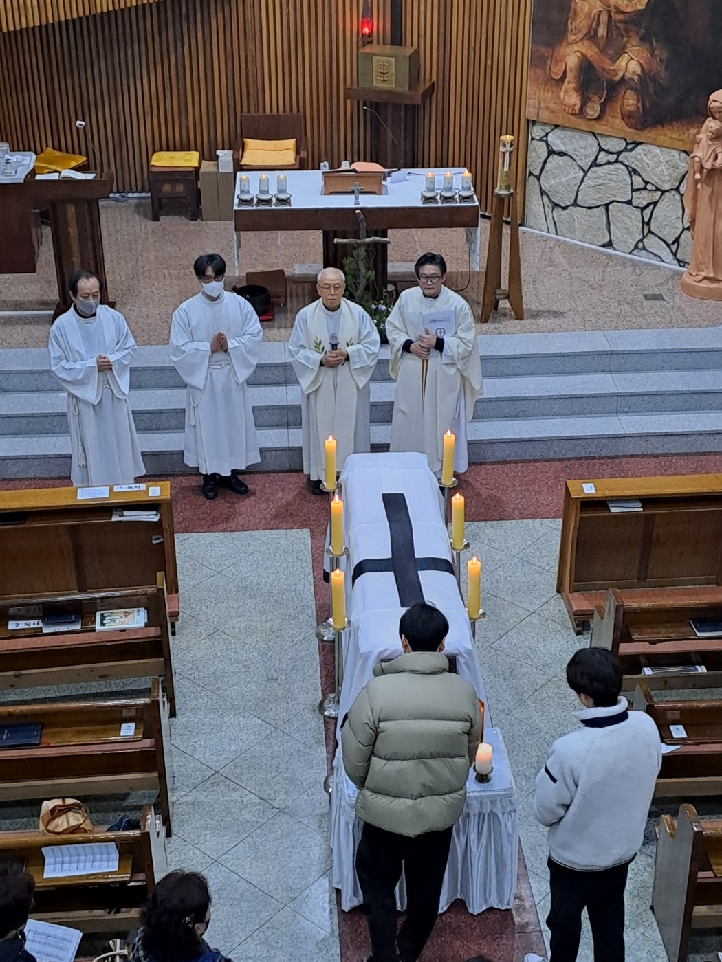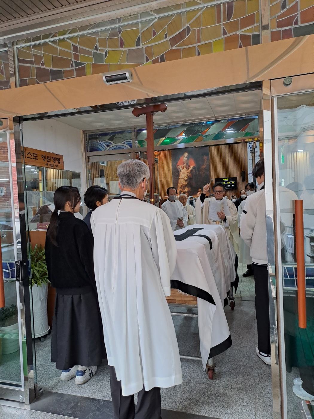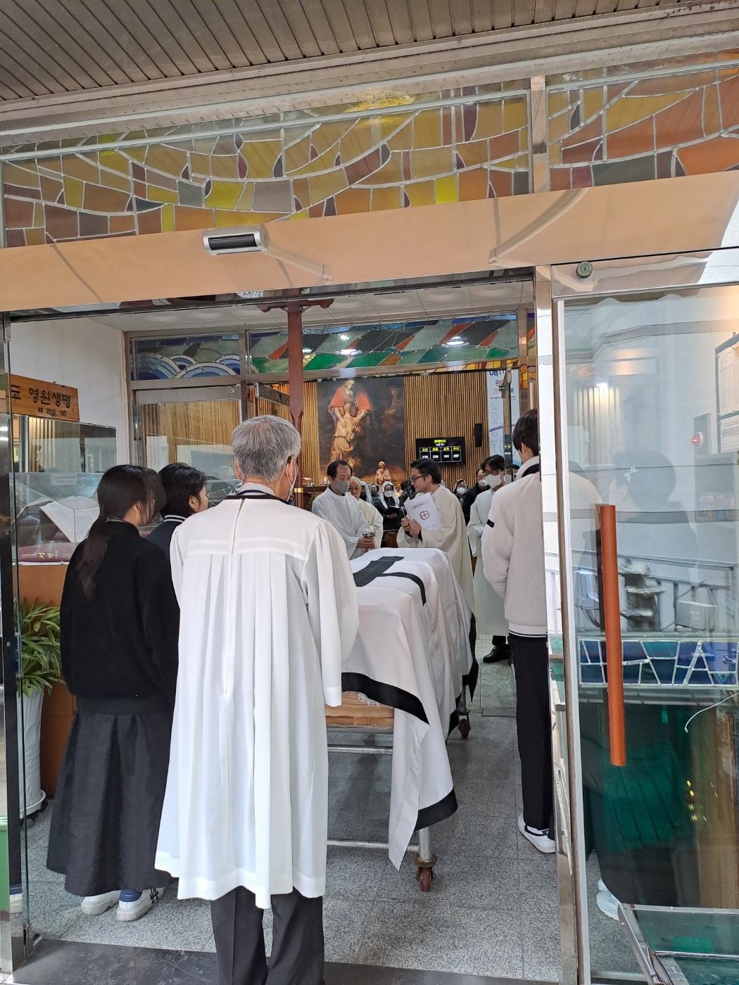 2월 22일 목요일 오전 9시 30분에 봉헌되었던 배의근(대건안드레아) 형제님의 장례 미사 모습. 그리스도인으로서 품위를 지키며 정의롭게 사셨고 본당공동체 내에서도 많은 존경을 받으셨던 형제님께서 하느님 나라에서 영원한 안식을 누리시길 바라면서 공동체가 함께 기억하며 기도합니다!!