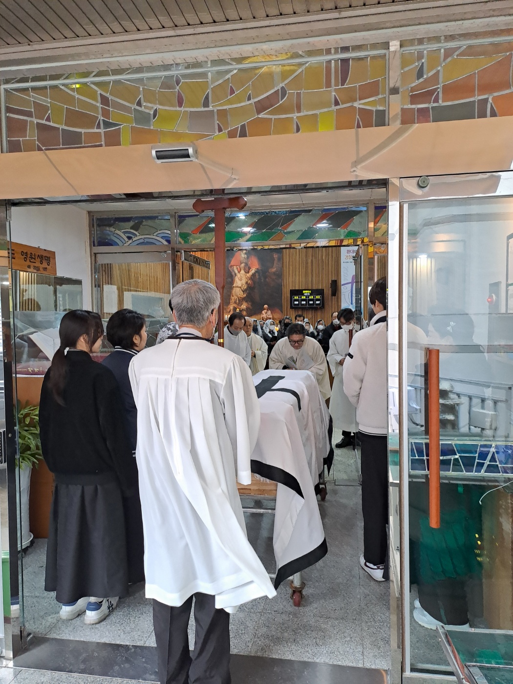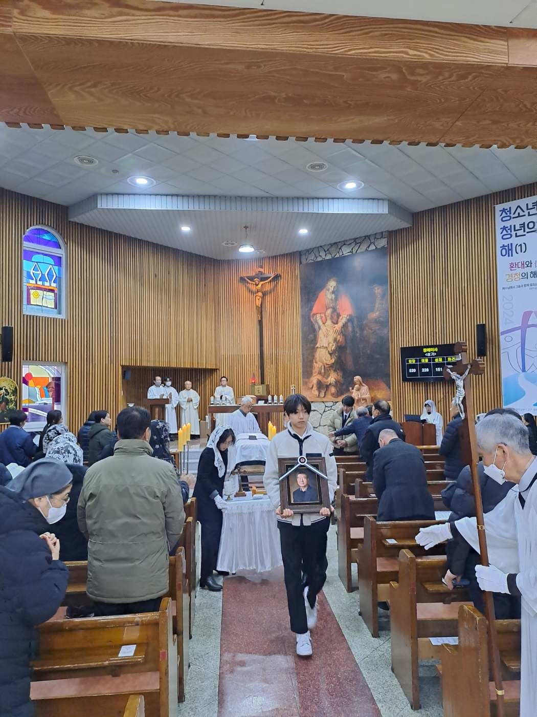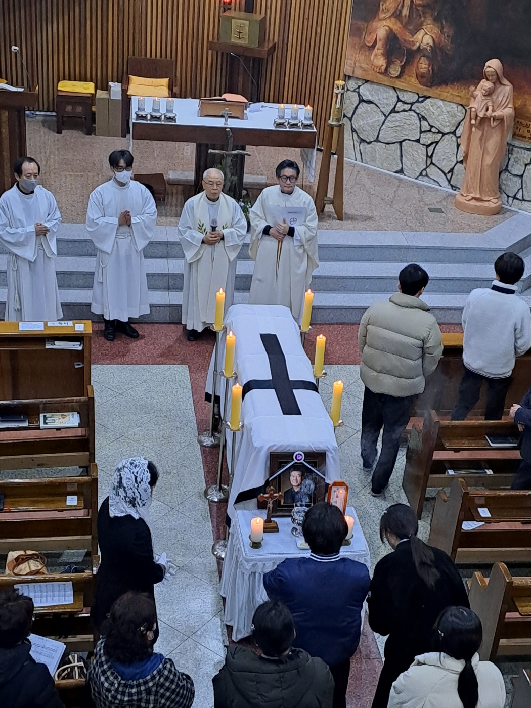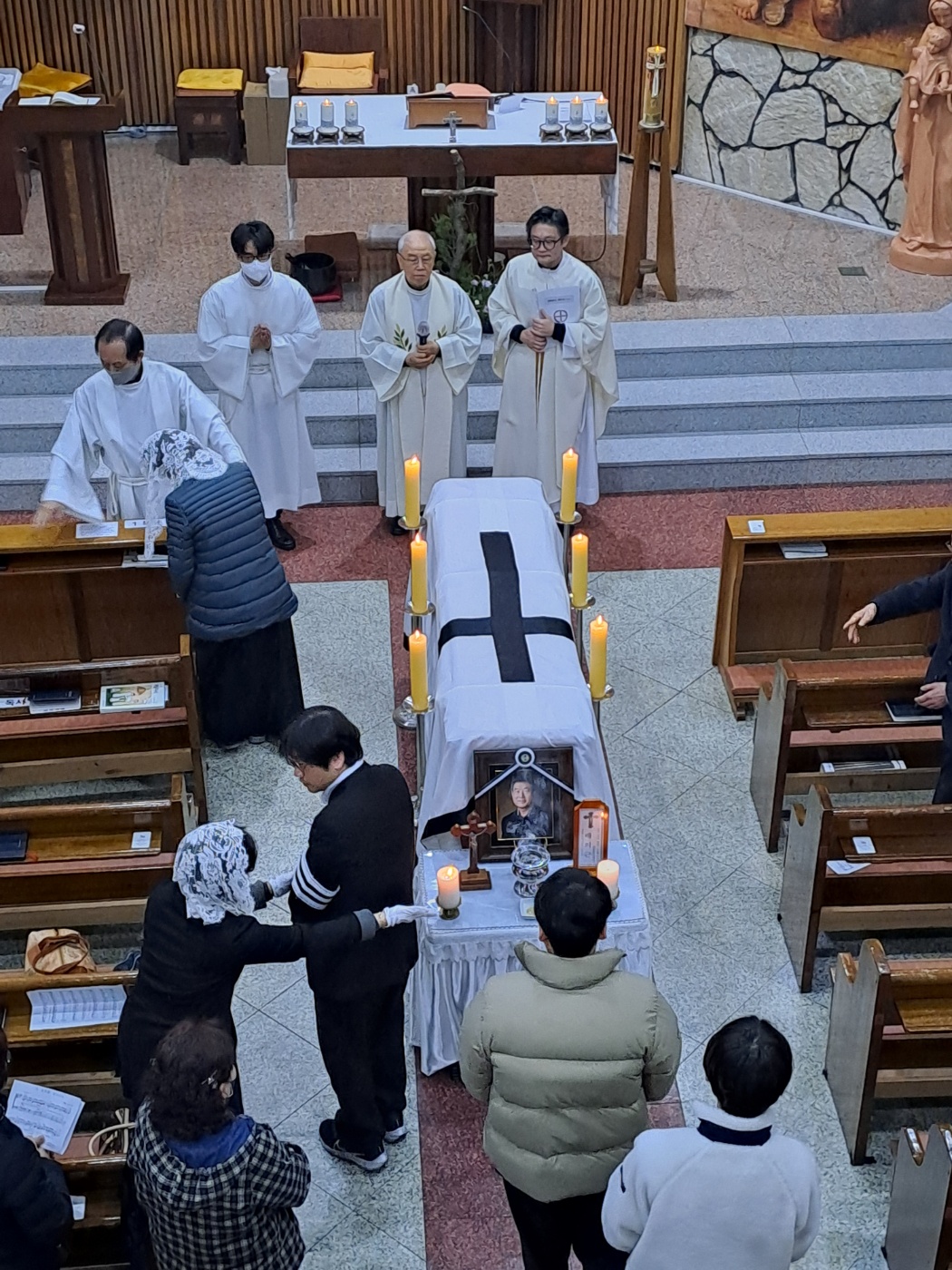 2월 22일 목요일 오전 9시 30분에 봉헌되었던 배의근(대건안드레아) 형제님의 장례 미사 모습. 그리스도인으로서 품위를 지키며 정의롭게 사셨고 본당공동체 내에서도 많은 존경을 받으셨던 형제님께서 하느님 나라에서 영원한 안식을 누리시길 바라면서 공동체가 함께 기억하며 기도합니다!!