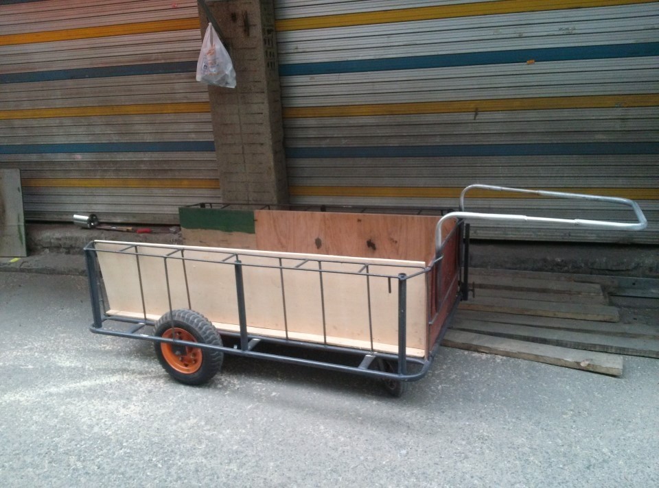 바퀴4개로 사용이 안전하며 일반 리어카 보다 길이가 길어, 부피가 크며 가벼운 물건 나르기에 적당.