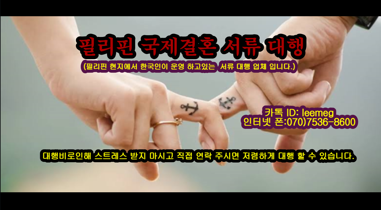 디테일한 중간 과정의 몇가지는 생략 하였습니다,(필리핀 PSA 혼인증명서 발급, 번역 후 한국에 혼인신고, 한국의 혼인관계 증명서와 가족관계 증명서 발급, 번역 공증 후 외무성 아포스티유, 한국 신랑의 여권 카피본과 필리핀에 출 입국한 사실 자료 )에 관련된 진행 과정에 대하여서는 생략 하였으니 디테일한 정보를 원하시면 070)7536-8600 으로 연락 주시면 자세히 안내 하여 드리겠습니다.