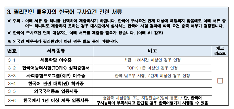 3. 필리핀인 배우자의 한국어 구사요건 관련 서류