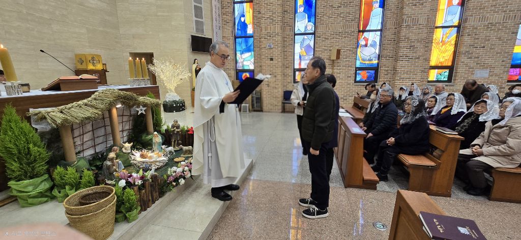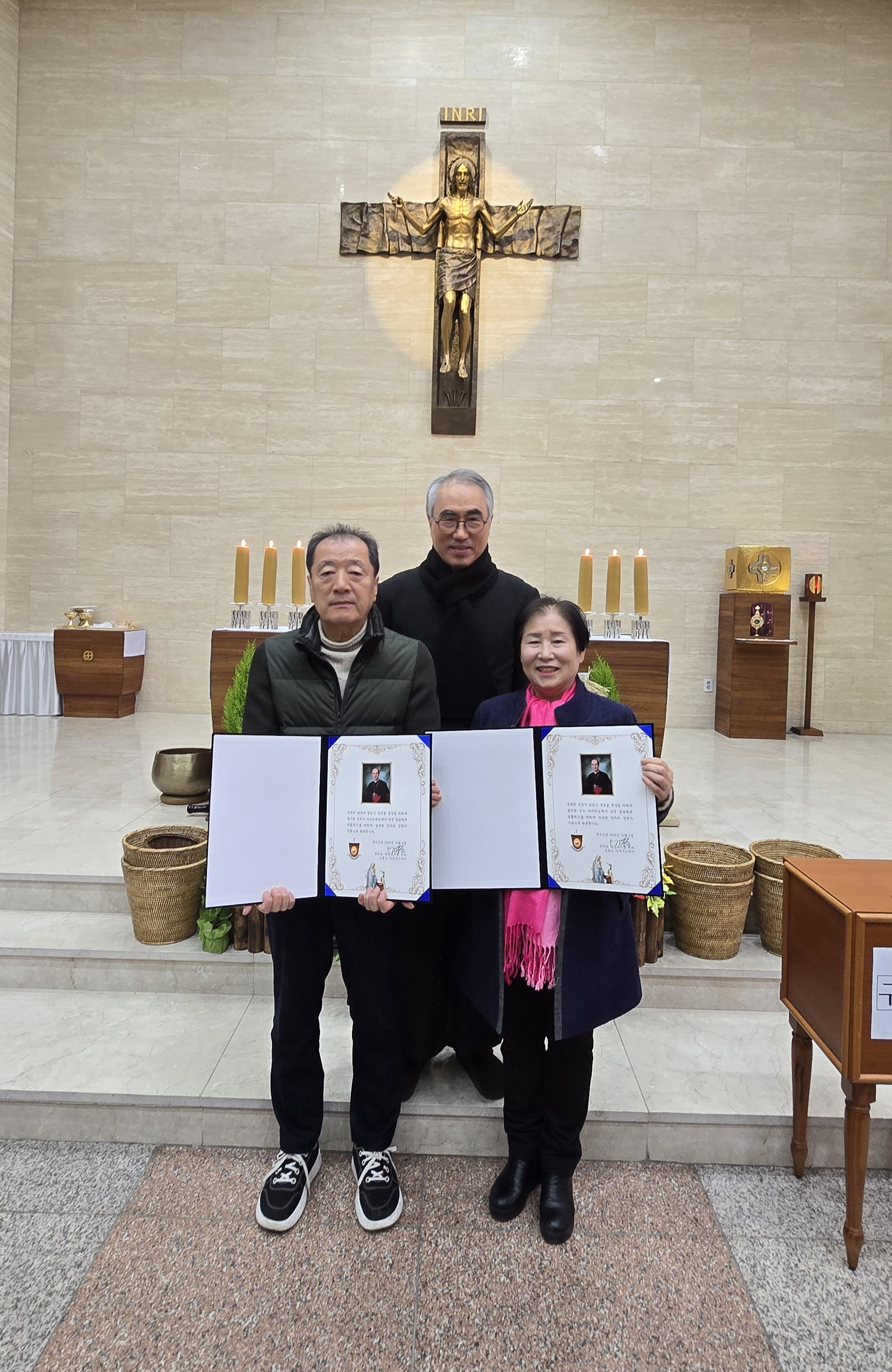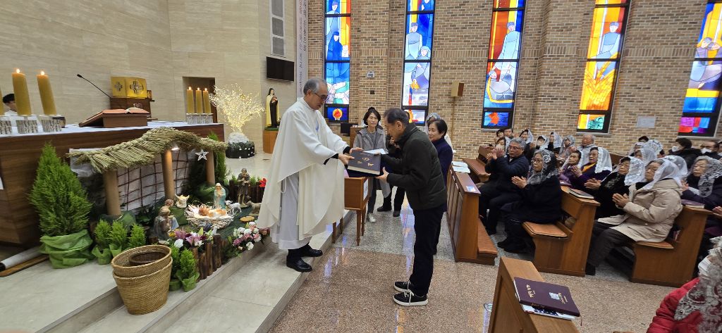 신구약 성경필사를 마친 본당 임학수(사도요한) 형제님과 임숙(에디타) 자매님에 대한 김종수 아우구스티노 주교님의 축복장 전수식이 2025.12.21 교중미사 중에 있었습니다.