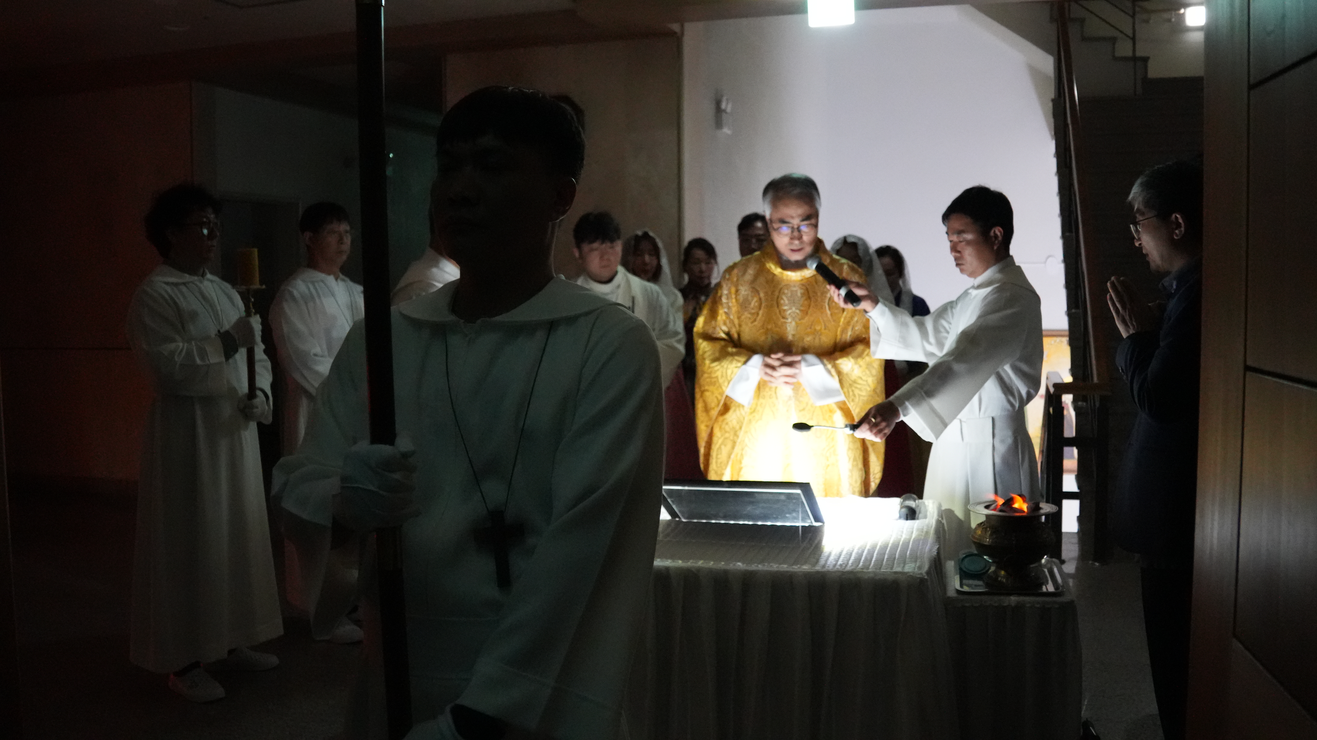 그리스도의 부활을 기다리며 깨어 기도하는 밤으로 죽음에서 생명으로 건너가는 신비로운 의미를 담고 있습니다.